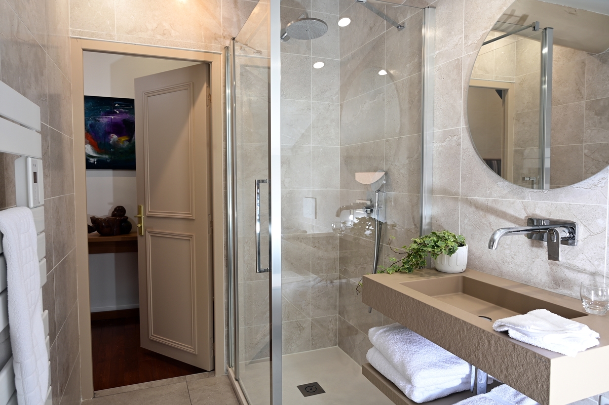 Nos chambres doubles spacieuses lit King-Size vous offrent l’espace et un confort optimal. D’une superficie d’environ 24 m², chaque chambre est dotée d’un lit King-Size (180×200) extrêmement confortable, équipé d’un surmatelas moelleux pour un sommeil réparateur. Sur demande, le lit peut également être configuré en deux lits jumeaux de 90×200, ce qui les rend adaptées aussi bien aux couples qu’aux amis voyageant ensemble. L’aménagement de la chambre comprend un coin salon avec fauteuil, un bureau pour écrire ou utiliser votre ordinateur, ainsi que de grands placards et étagères pour ranger vos effets personnels. La décoration allie modernité et touches authentiques, toujours dans l’esprit chaleureux de la maison. Vous disposerez bien sûr de la climatisation, d’un mini-bar, d’un plateau thé/café et d’une télévision à écran plat pour vos moments de détente. La salle de bain privative est particulièrement agréable : grande douche à l’italienne, vasque, miroir, toilettes, sèche-cheveux haut de gamme et fenêtre pour la lumière du jourhostalet.fr. Situées côté Rue de la République (zone piétonne menant à l’église), ces chambres offrent une vue sur la rue villageoise typique tout en restant très calmes. Volumes généreux, grand lit king ultra-doux, et prestations haut de gamme – ces chambres sont parfaites pour ceux qui souhaitent se faire plaisir ou pour les séjours plus longs. Vous y trouverez l’espace et le bien-être dignes d’un boutique-hôtel de luxe, avec le charme convivial de L’Hostalet en plus.