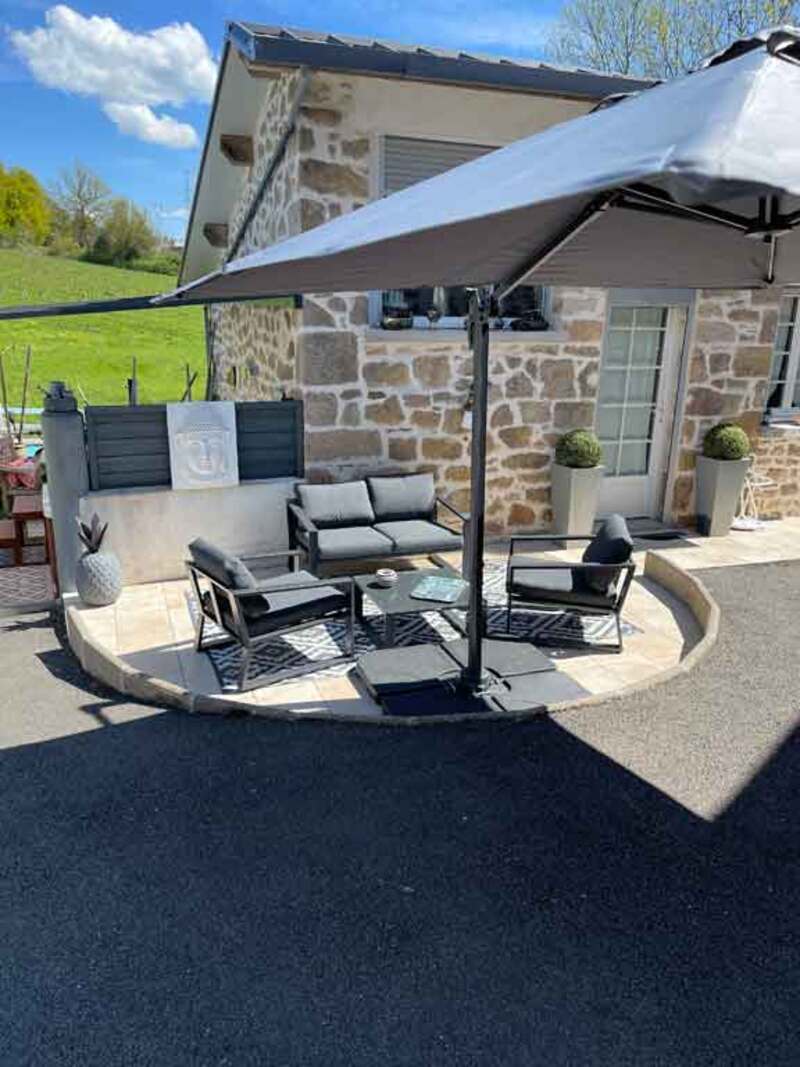 Belle terrasse privée à la chambre avec son mobilier, parasol