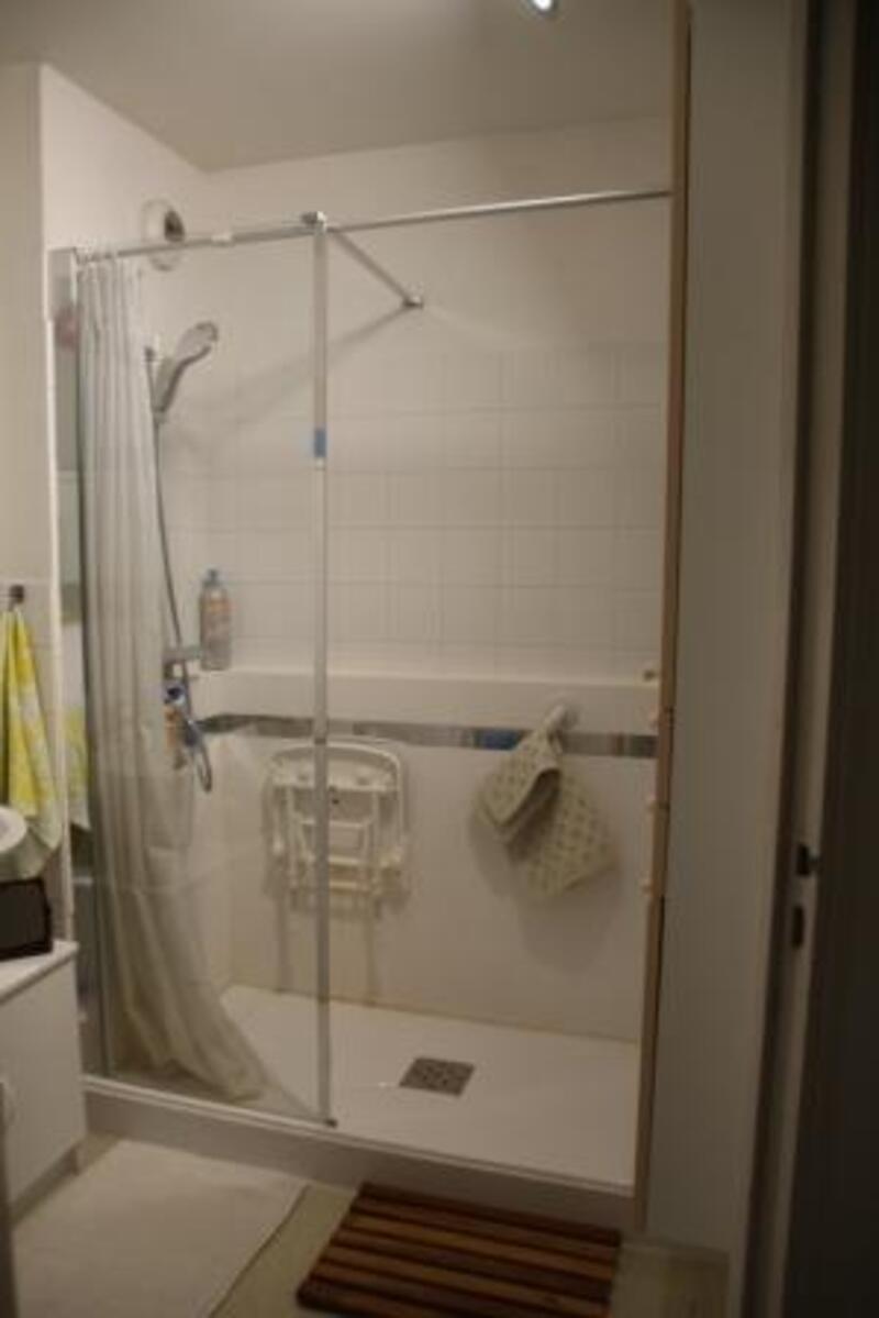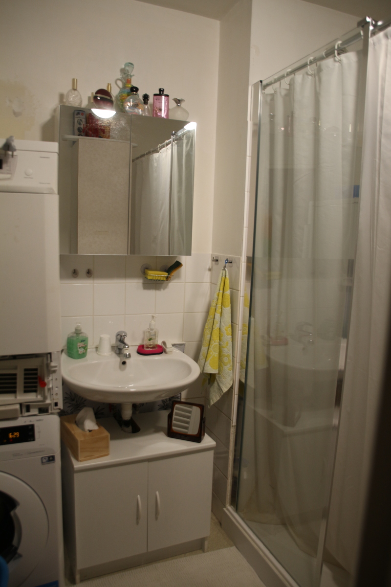 dans la salle de bain, vous trouverez une douche, un lavabo, le linge de toilette est fourni et le gel douche, ainsi que du schampoing est mis à disposition .