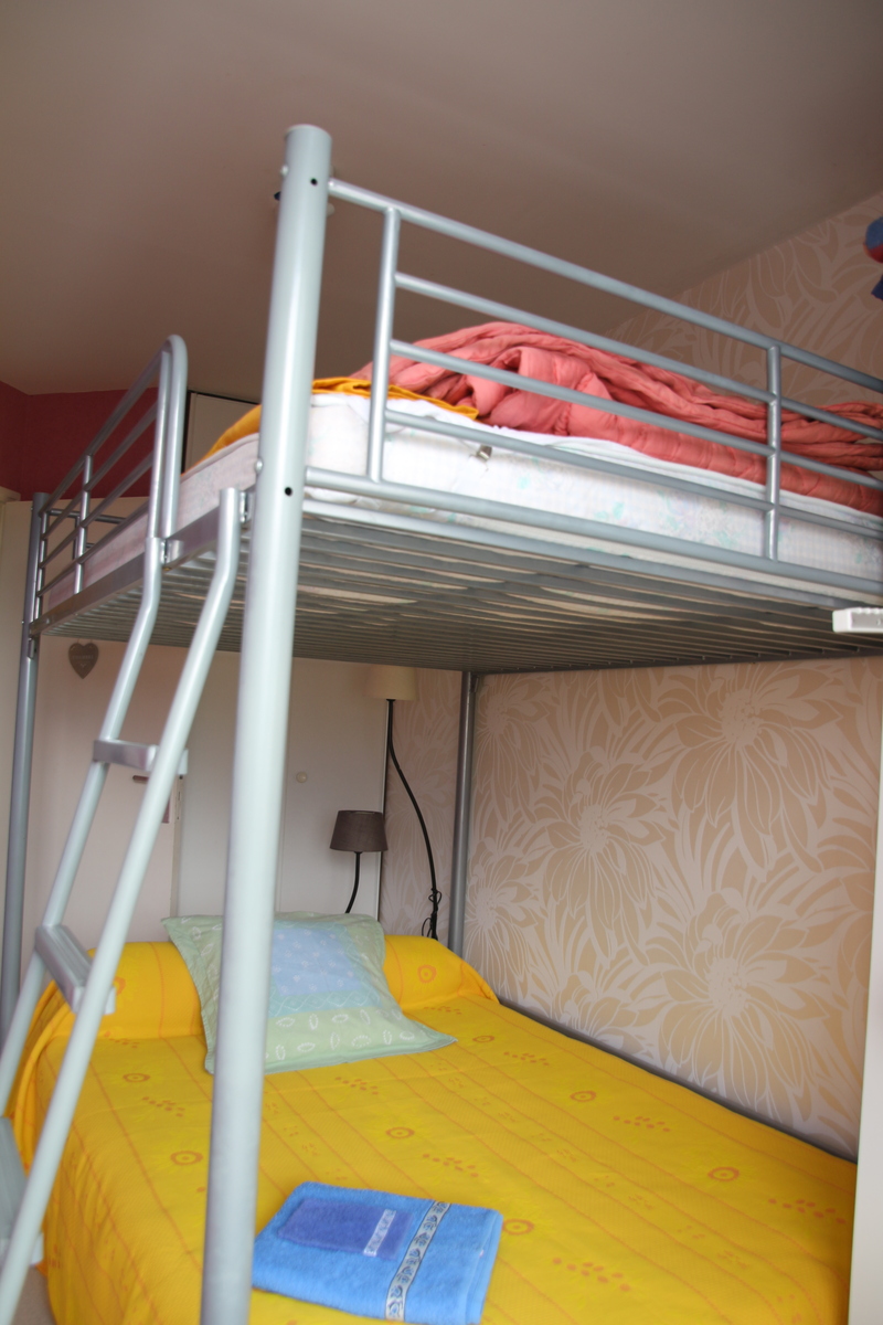 2 chambres à l'étage avec une chambre parentale et une chambre avec les lits superposés de 140x190cm les 3 lits