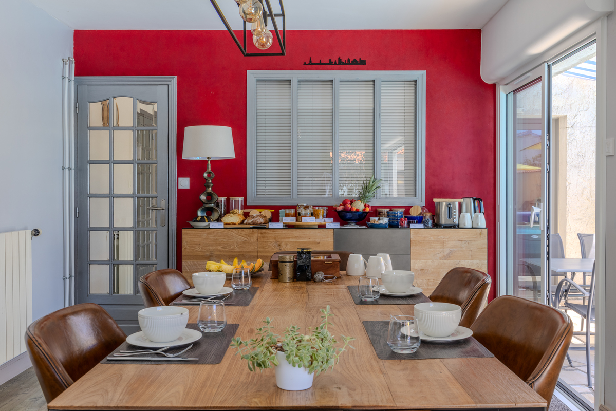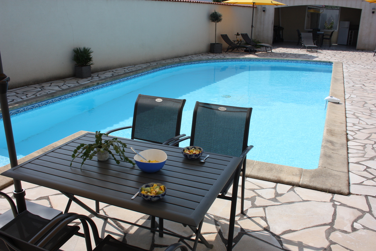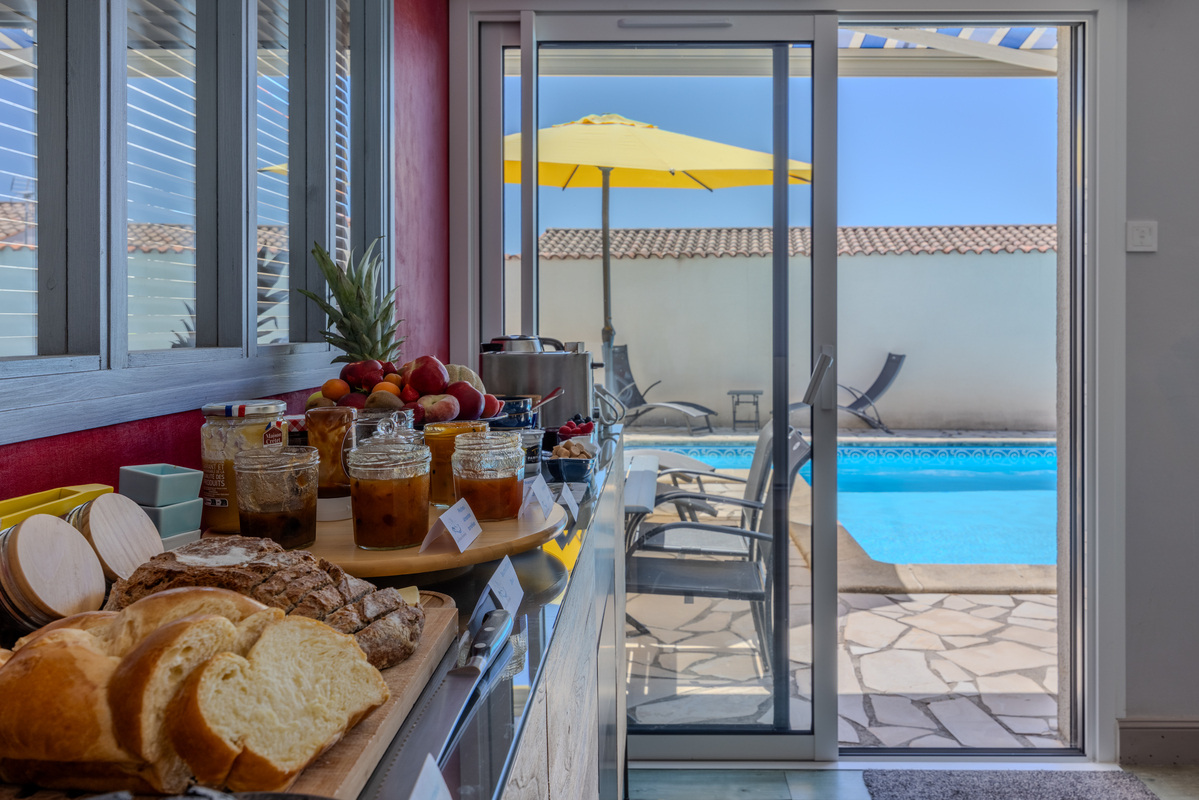 Nous pouvons vous préparer un petit déjeuner copieux et diversifié de produits locaux en option pris au buffet, le long de la piscine ou livré sur le gîte àvotre demande (tarif 11€ / personne).