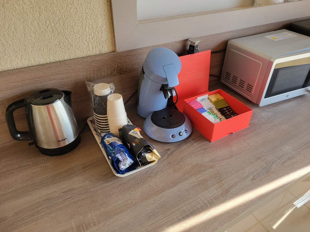 Sèche cheveux, télévision, wifi, lit bébé, toilettes, douche, plateau de courtoisie, articles de toilette, peignoirs, climatisation réversible, sèche-serviette