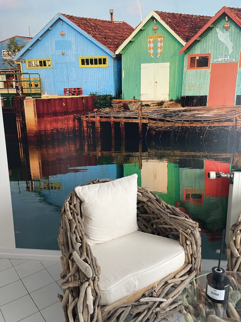 bois flotté, la décoration se veut à l'image de cette île, riche à la fois de ses côtes très variées et de ses espaces forestiers.
