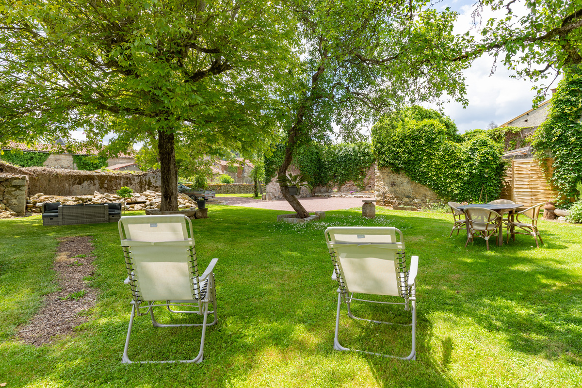 Sur place, je vous propose des séances de détente avec le bain à remous (de mai à septembre), des massages bien-être ou des séances de méditation. La chambre Baudelaire dispose d'une douche aux jets hydro-massants et d'un coin salon privé avec vue sur les montagnes. Le parc et le verger sont à votre disposition pour profiter du chant des oiseaux ou de l'ombrage du vieux noyer, allongé sur un confortable transat, dans le salon de jardin ou encore ou autour d'une table en bois.