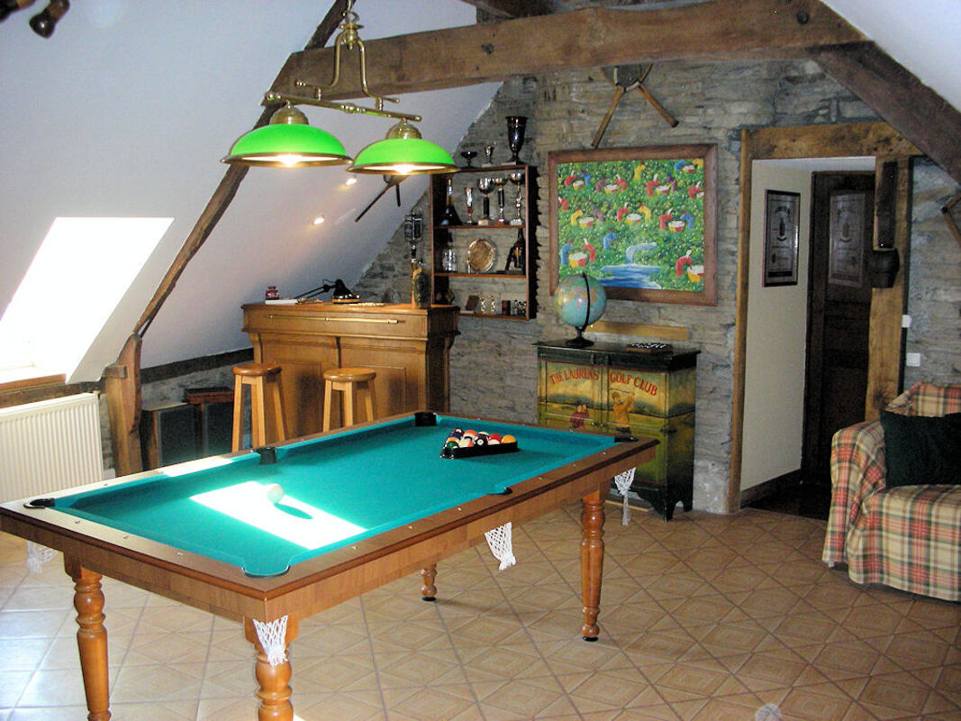 LE CLUB, 2ème étage sous poutres, accès par escalier de meunier, billard américain, fléchettes et télévision.