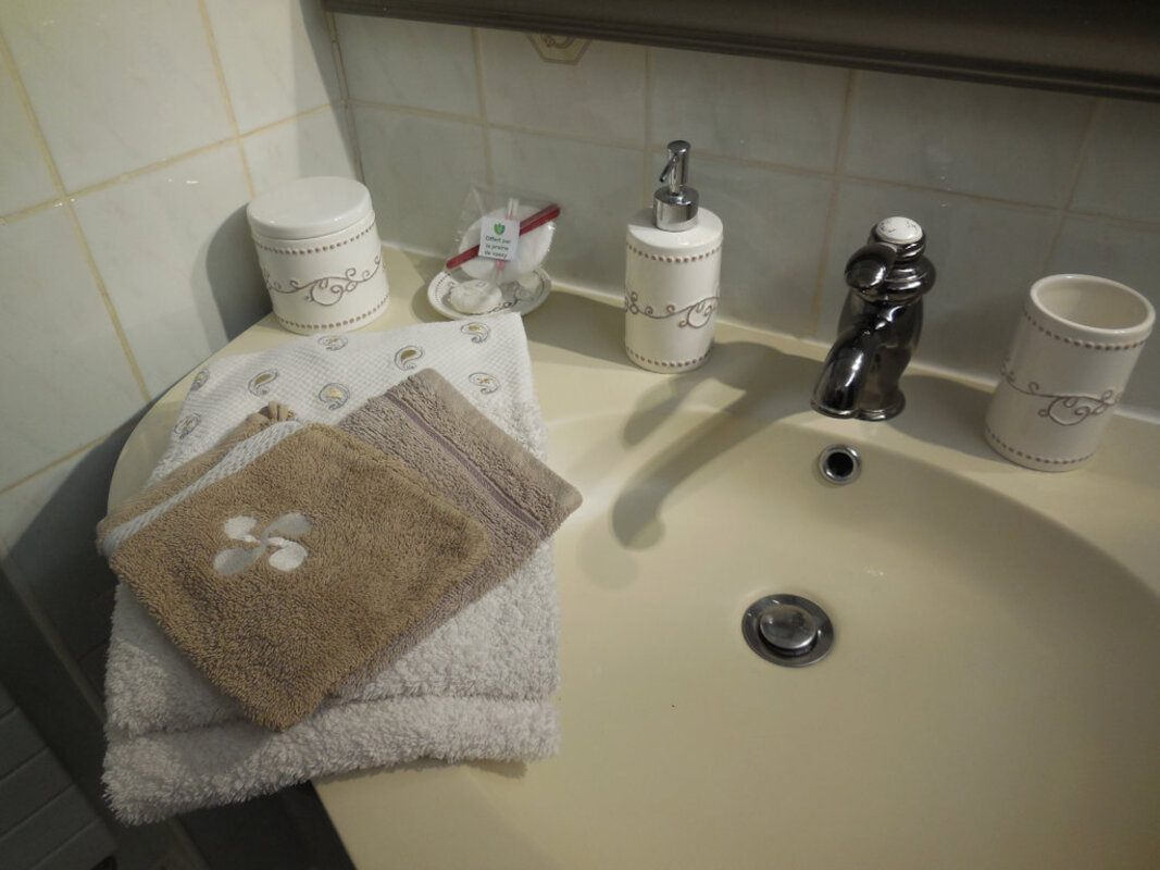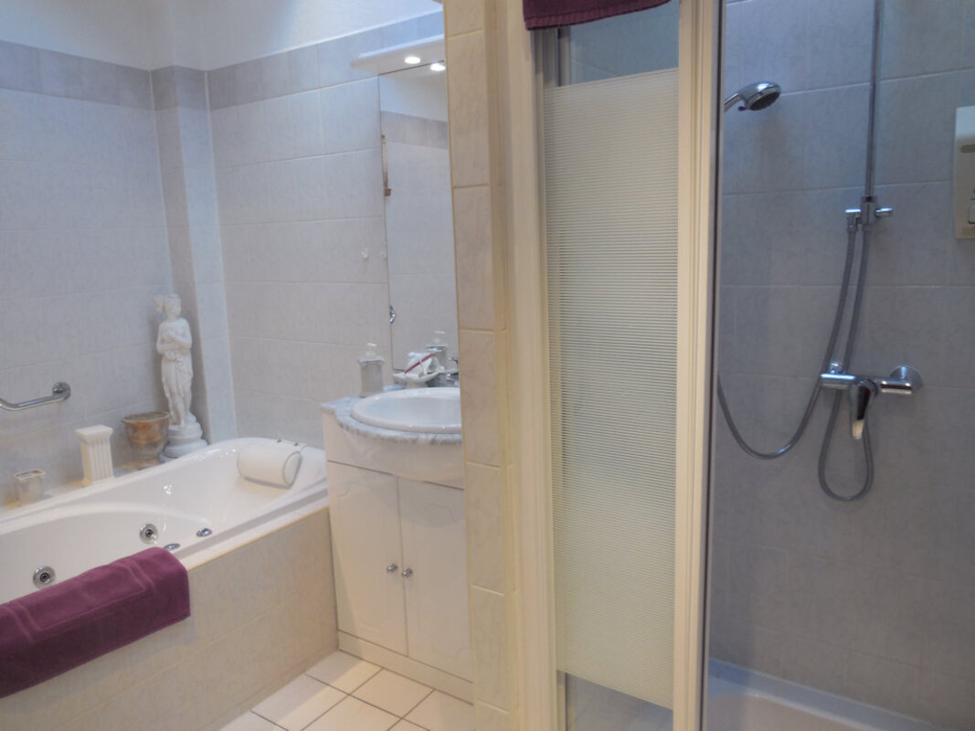 - Suite « MONT ST MICHEL », 1er étage, côté jardin, WC et salle de bain séparés (douche + baignoire à jets).