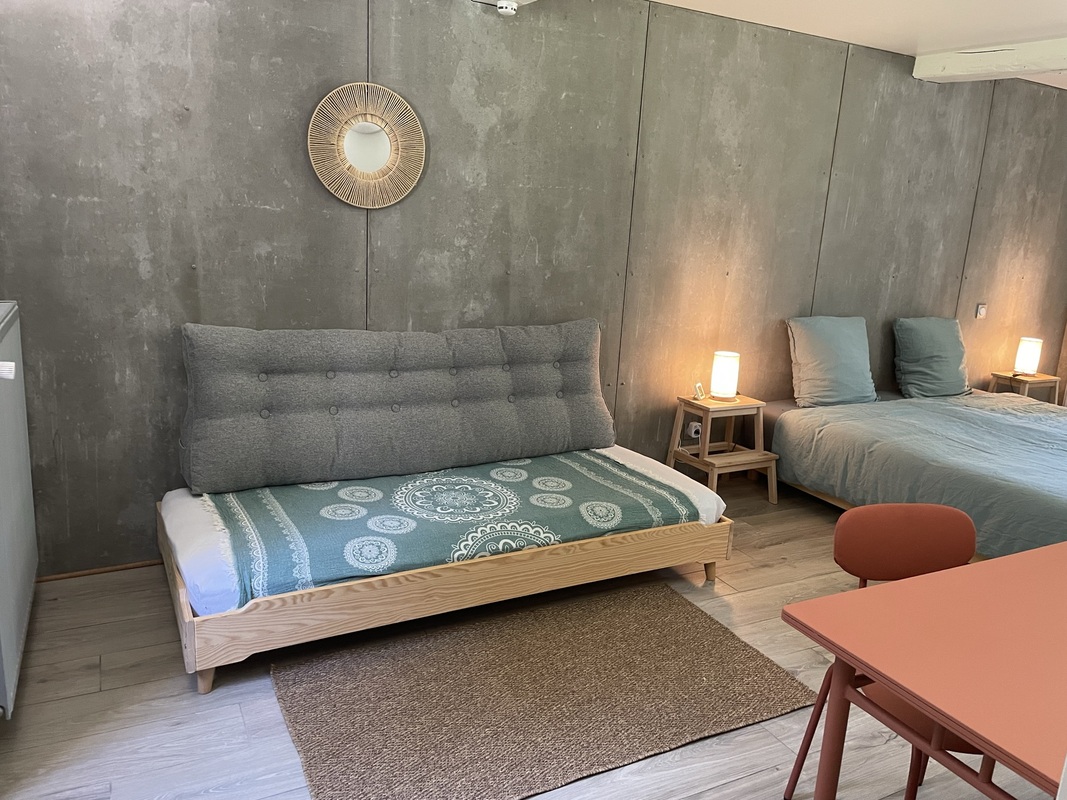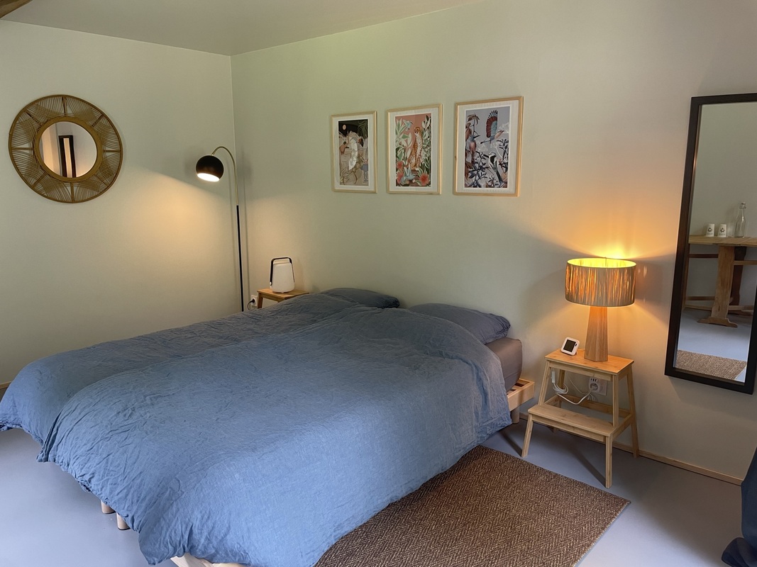 2 ou 3 personnes : 1 lit double 180x200 (ou 2 lits séparés sur demande) + 1 lit simple 90x190.