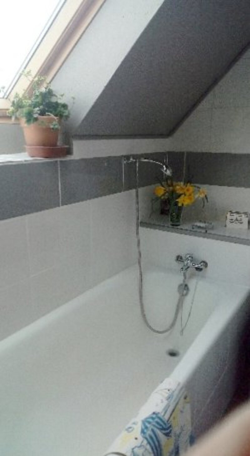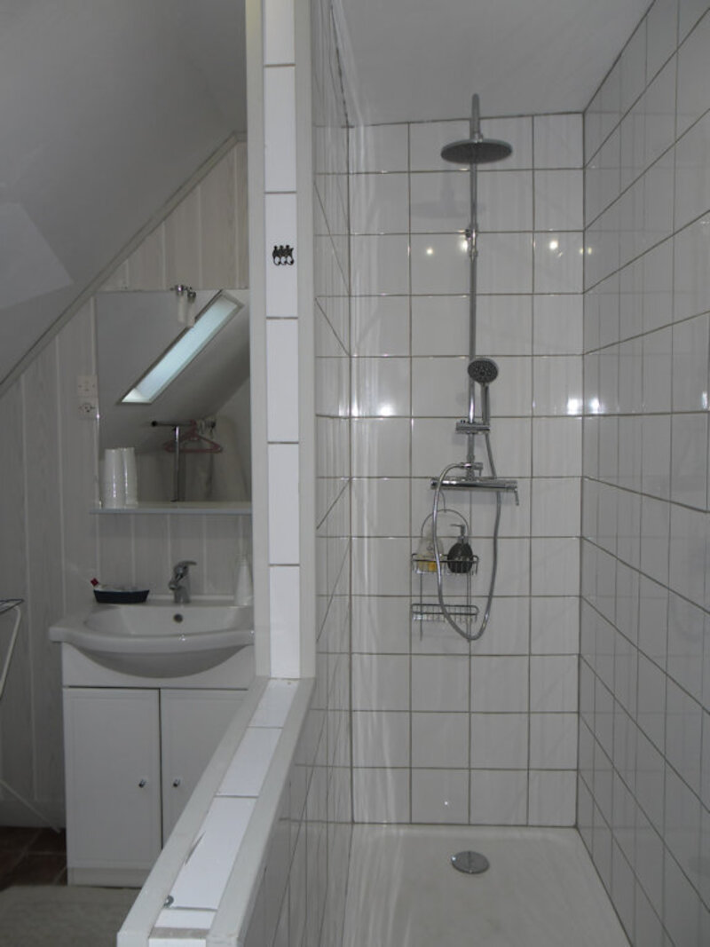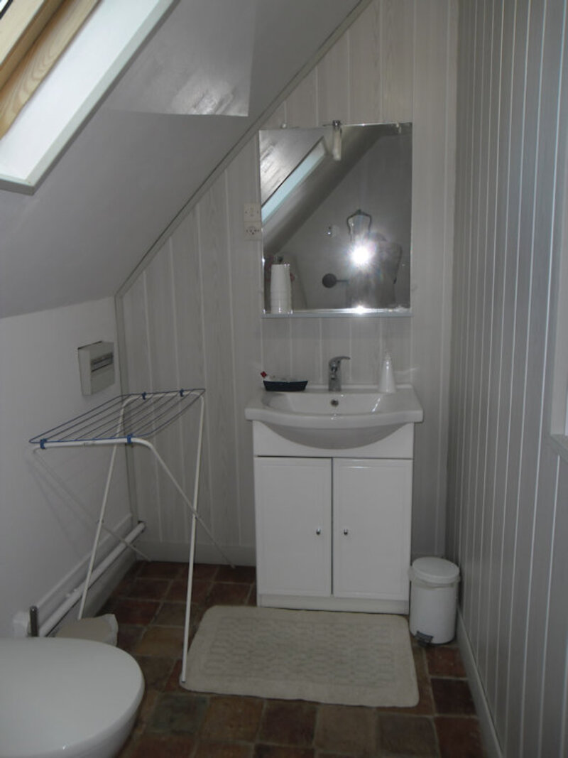 Réfrigérateur, lit bébé, plateau de courtoisie, articles de toilette, salle de bain commune, penderie