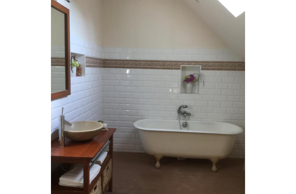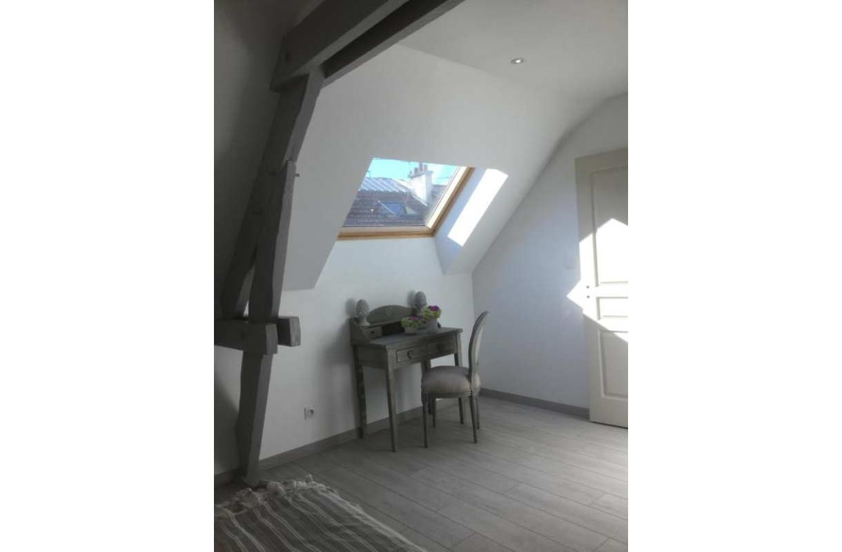 Située au deuxième étage et d’une superficie de vingt mètres carrés et disposant d’un lit de 160 X 200. Connexion wifi. Salle de bain avec baignoire ancienne et wc. Des produits d’accueil vous attendent. Nous mettons à votre disposition sèche cheveux et bouilloire.
