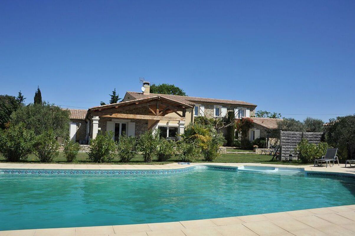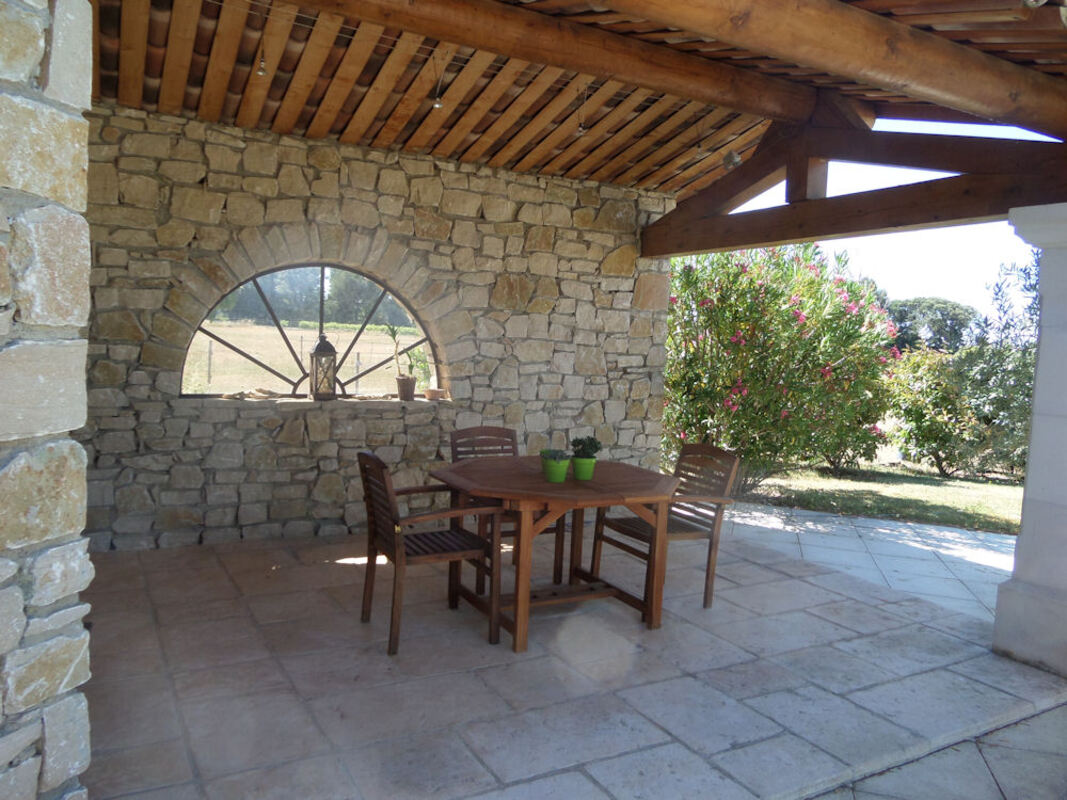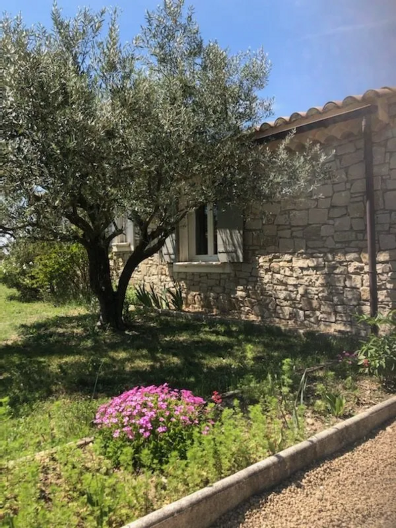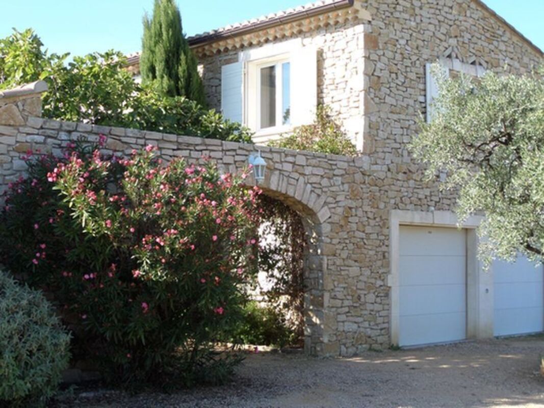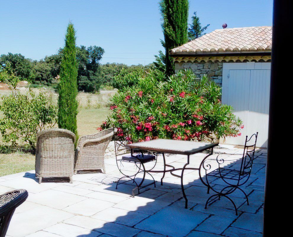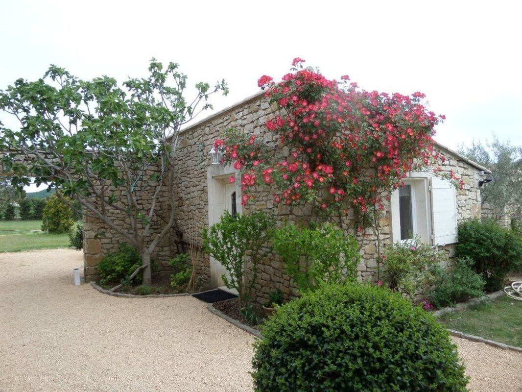 Charmant mazet, indépendant, de plain-pied, avec une grande terrasse couverte ayant un accès direct à la piscine entourée de lauriers et d'oliviers. Composé d'une chambre, salle de douche, WC et coin cuisine.