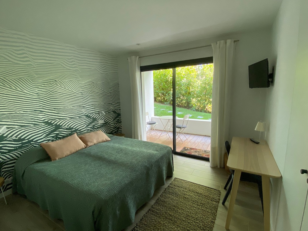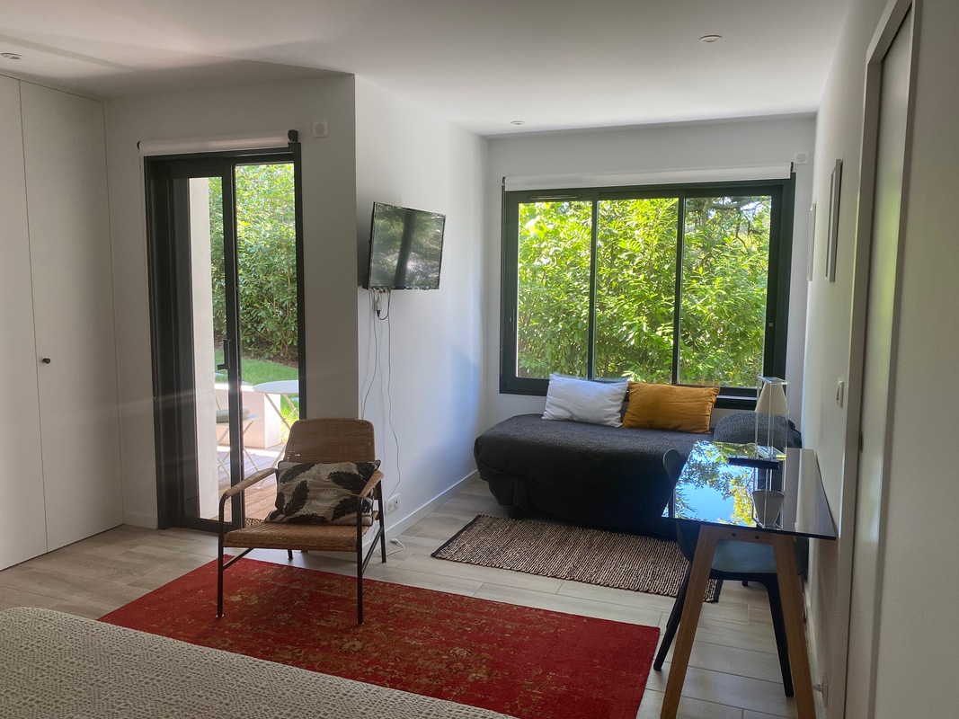 Sèche cheveux, télévision, wifi, toilettes, douche, coin bureau, terrasse privée, penderie, sèche-serviette