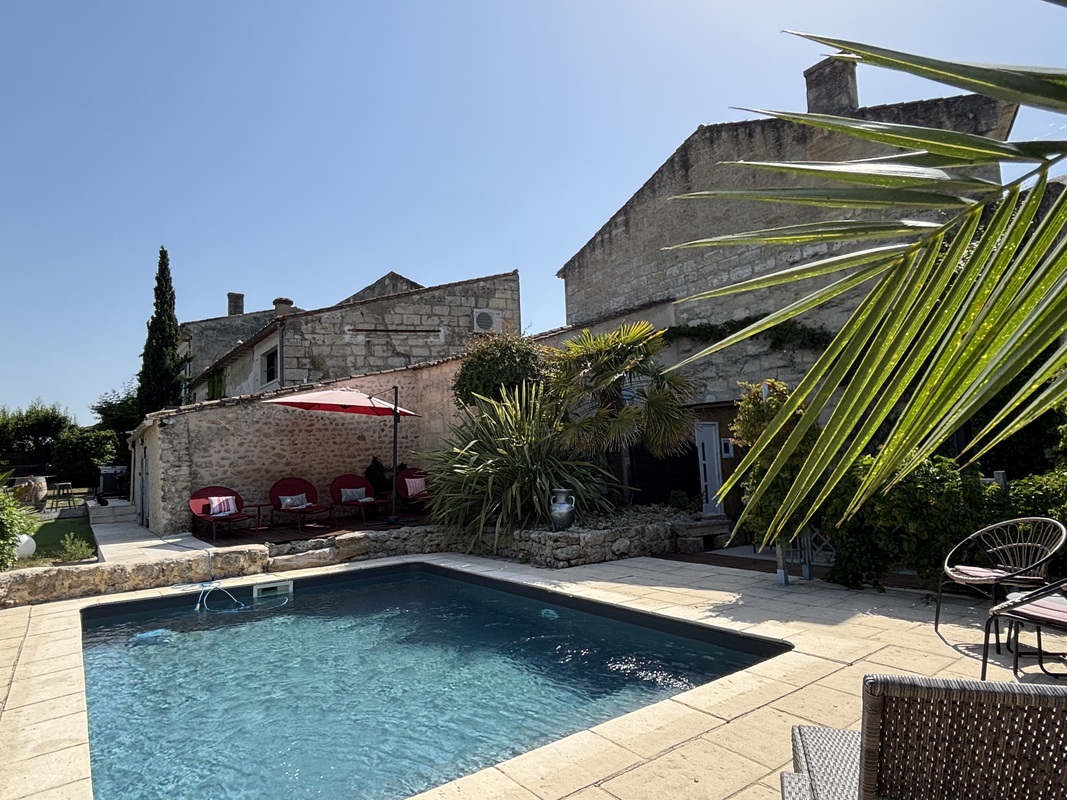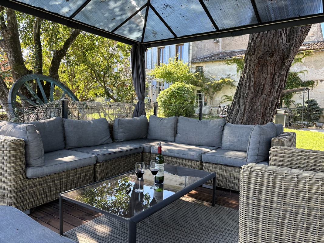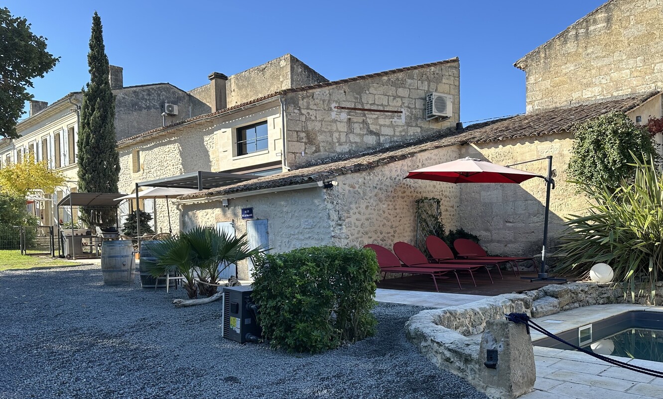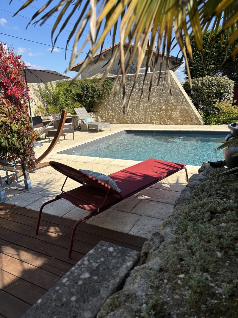 14 personnes maxi, privatisation possible. Mars à octobre - bâtisse du 18ème siècle, luxe, climatisation, wifi gratuit, parking, 6 suites équipées, table d'hôtes - enfants >11 ans - non fumeur - vue sur l'estuaire de la Gironde - Piscine chauffée et jacuzzi. Vélos gratuits sur place. Vue, calme, détente, confort, abordable.