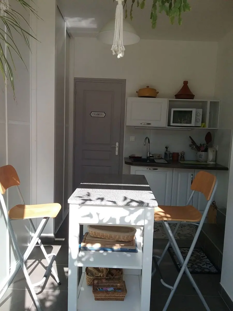 L’unique chambre d’hôtes, équipée d’un lit double confortable (160 cm), se situe en rez-de-jardin avec un accès indépendant. Elle dispose d’une salle de bain et de WC privatifs séparés, pour un séjour en toute autonomie. Une kitchenette est également à votre disposition pour préparer des repas simples.
