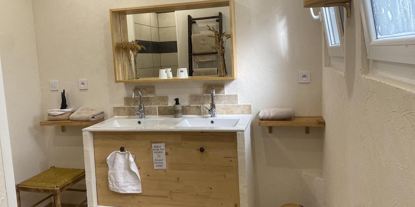 Cette chambre de 22 m est équipée d'un lit en 160/200, toilettes séparées, douche à l'italienne, double vasque.