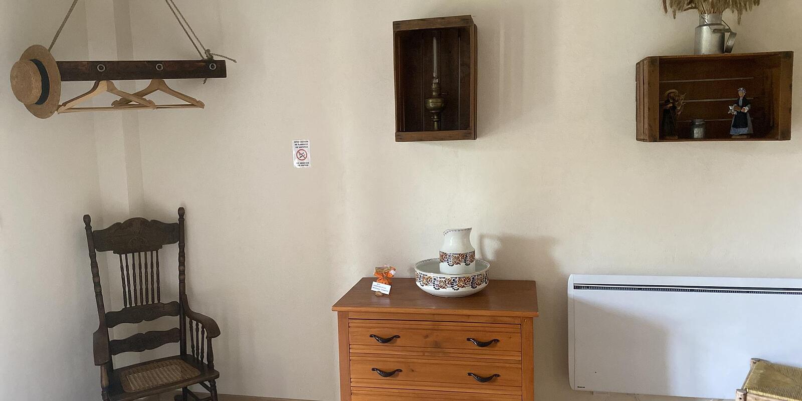 Chambre de style campagne décorée avec des objets détournés et chinés.