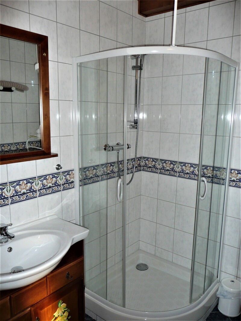 Chaque chambre à un grand lit, une salle d'eau privative avec douche.