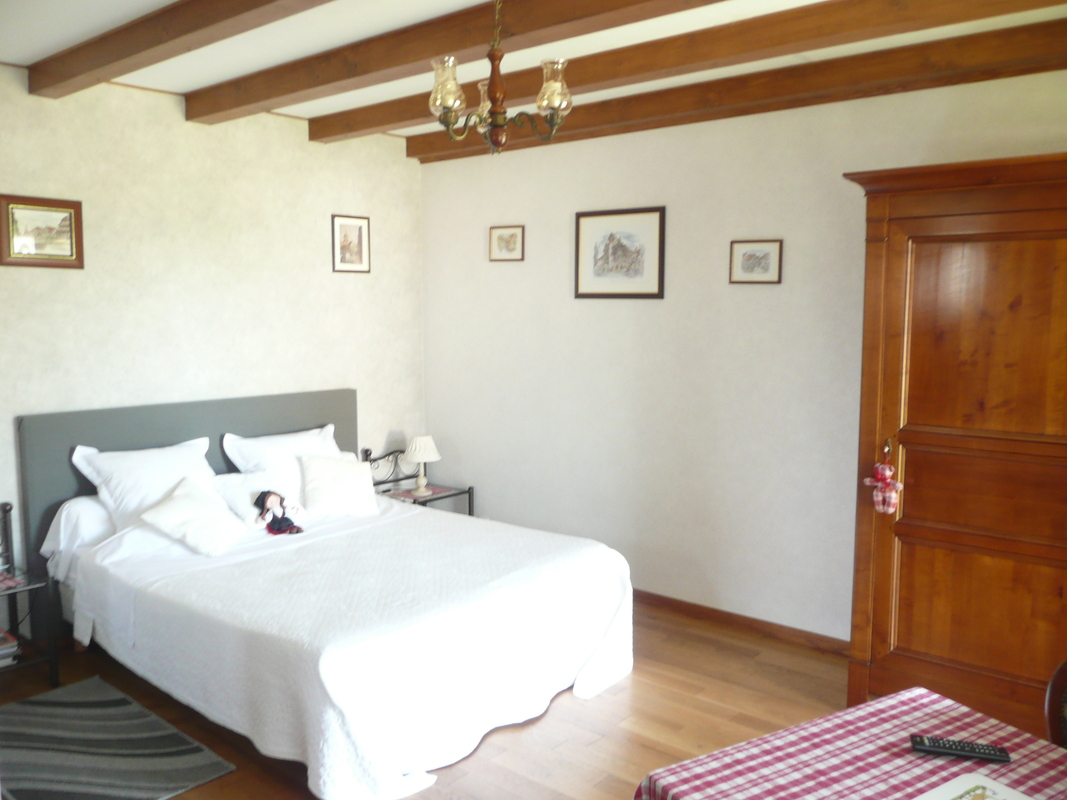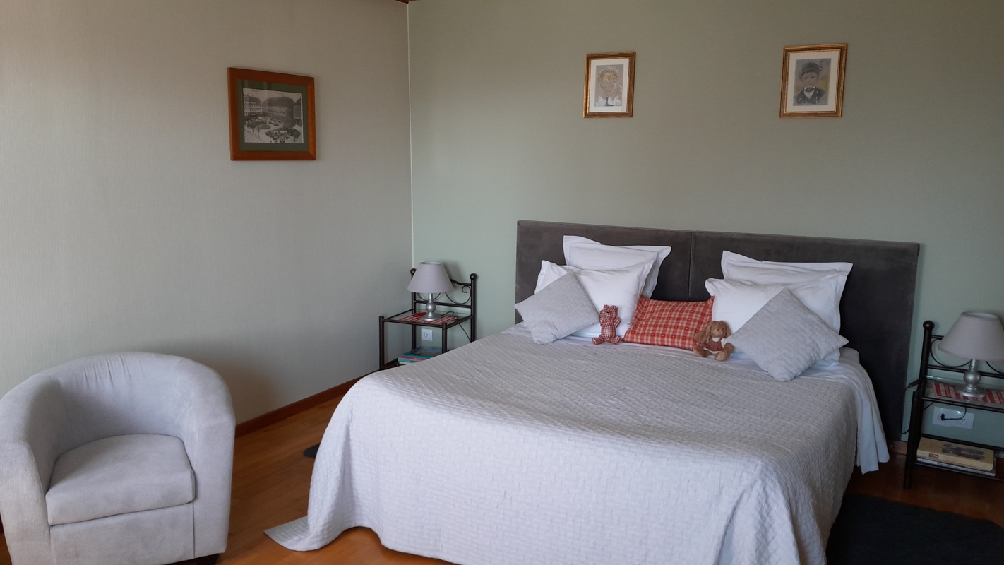 Chambre de 25 m2, confortable, avec un grand lit de 1.60 m x 2 m et un canapé 2 personnes, table , chaises, et armoire.