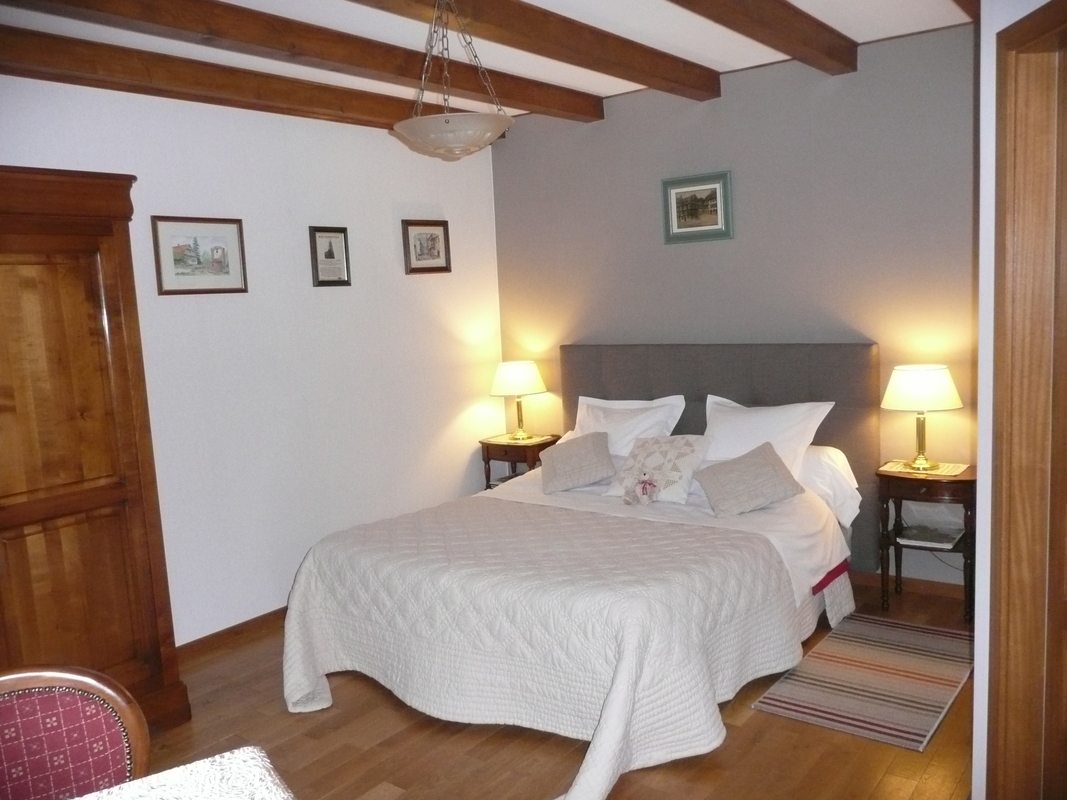 Chambre de 25 m2 avec un lit de 1.80 m x 2 m ou 2 lits de 0.90 x 2 m, sur demande lors de la réservation.
