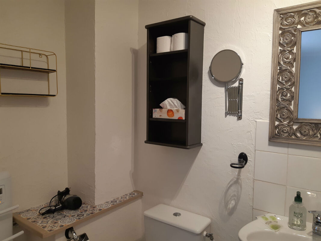 Sèche cheveux, télévision, wifi, toilettes, douche, penderie, sèche-serviette