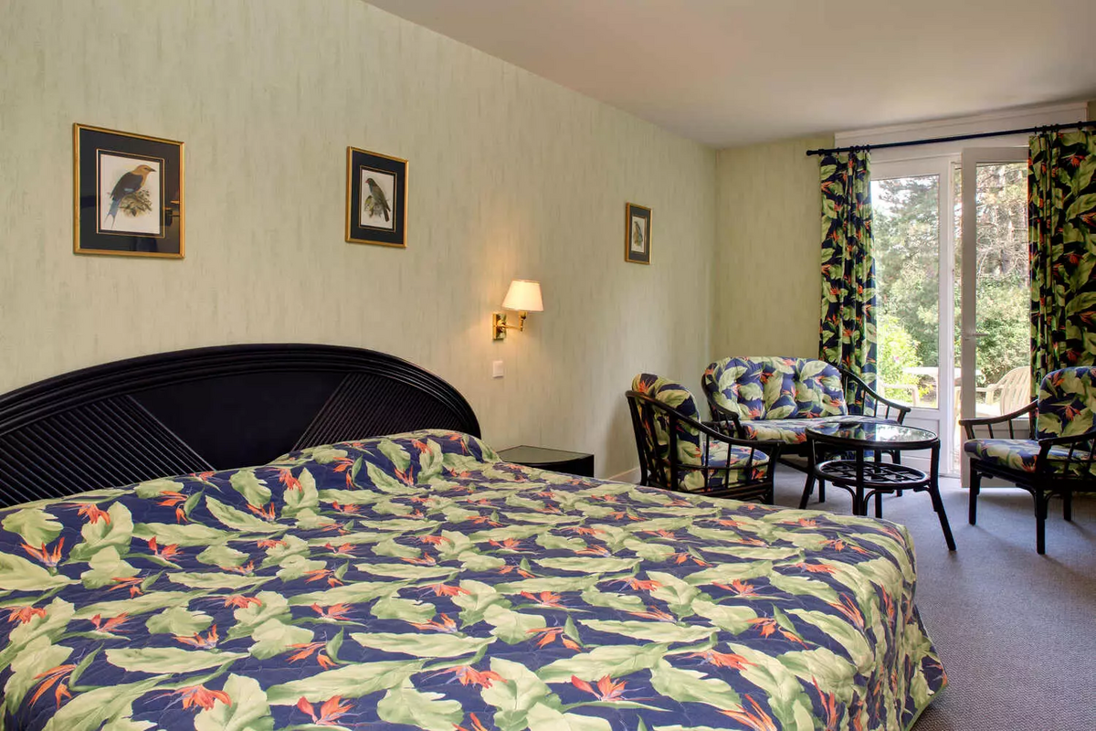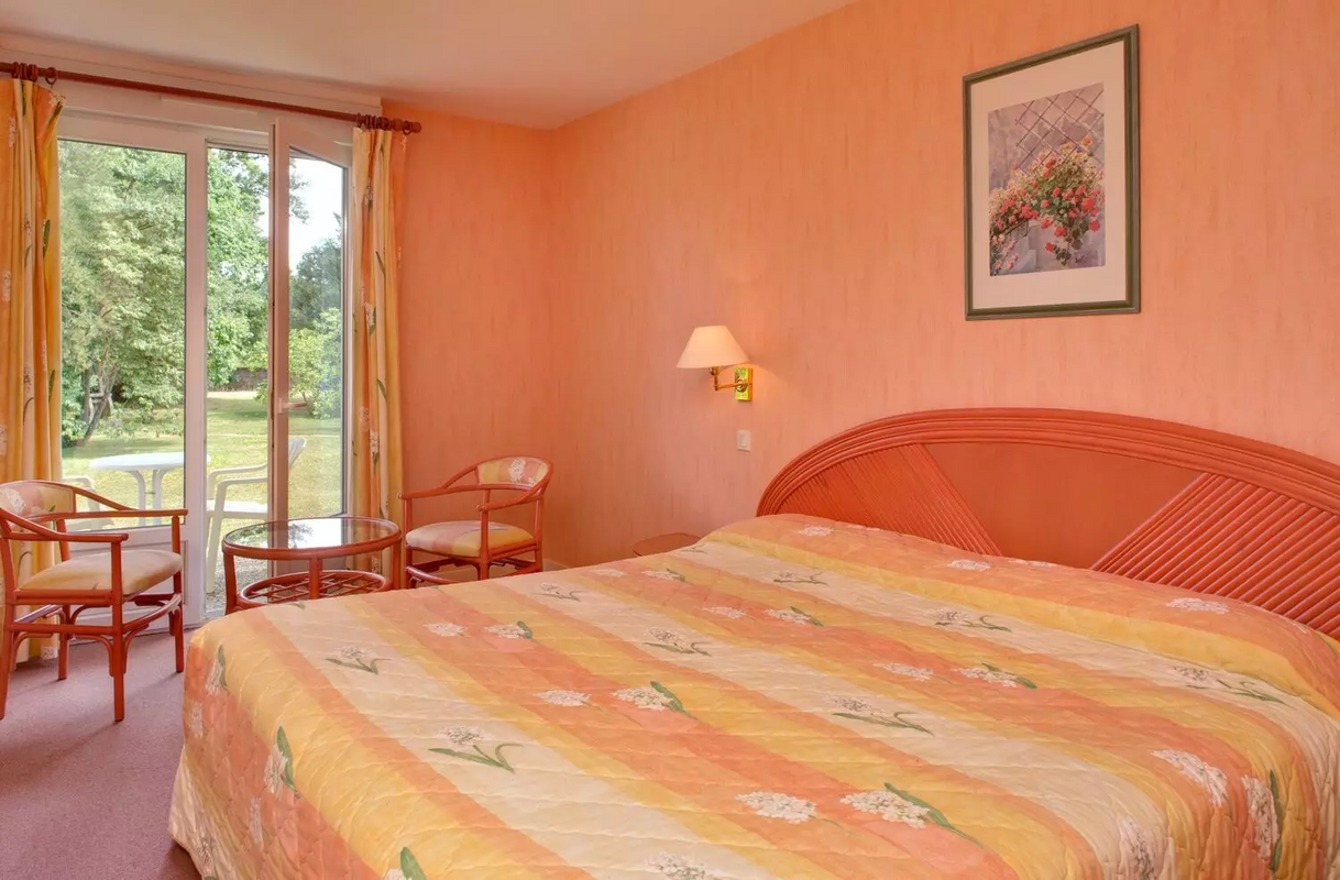 Votre chambre spacieuse et lumineuse de 32 m², donnant sur le parc et la piscine.