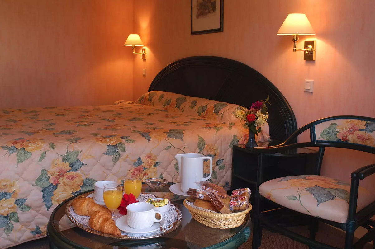 Découvrez des spacieuses et lumineuses chambres, toutes équipées que ce soit solo, en couple, un séjour en famille ou entre amis. Profitez du confort de nos 45 chambres décorées avec soin, dont une accessible aux personnes à mobilité réduite. Chaque chambre est équipée d’un téléviseur à écran plat avec chaînes satellite et Canal+, d’un accès Wi-Fi offert, ainsi que d’une salle de bain privative avec sèche-cheveux.
