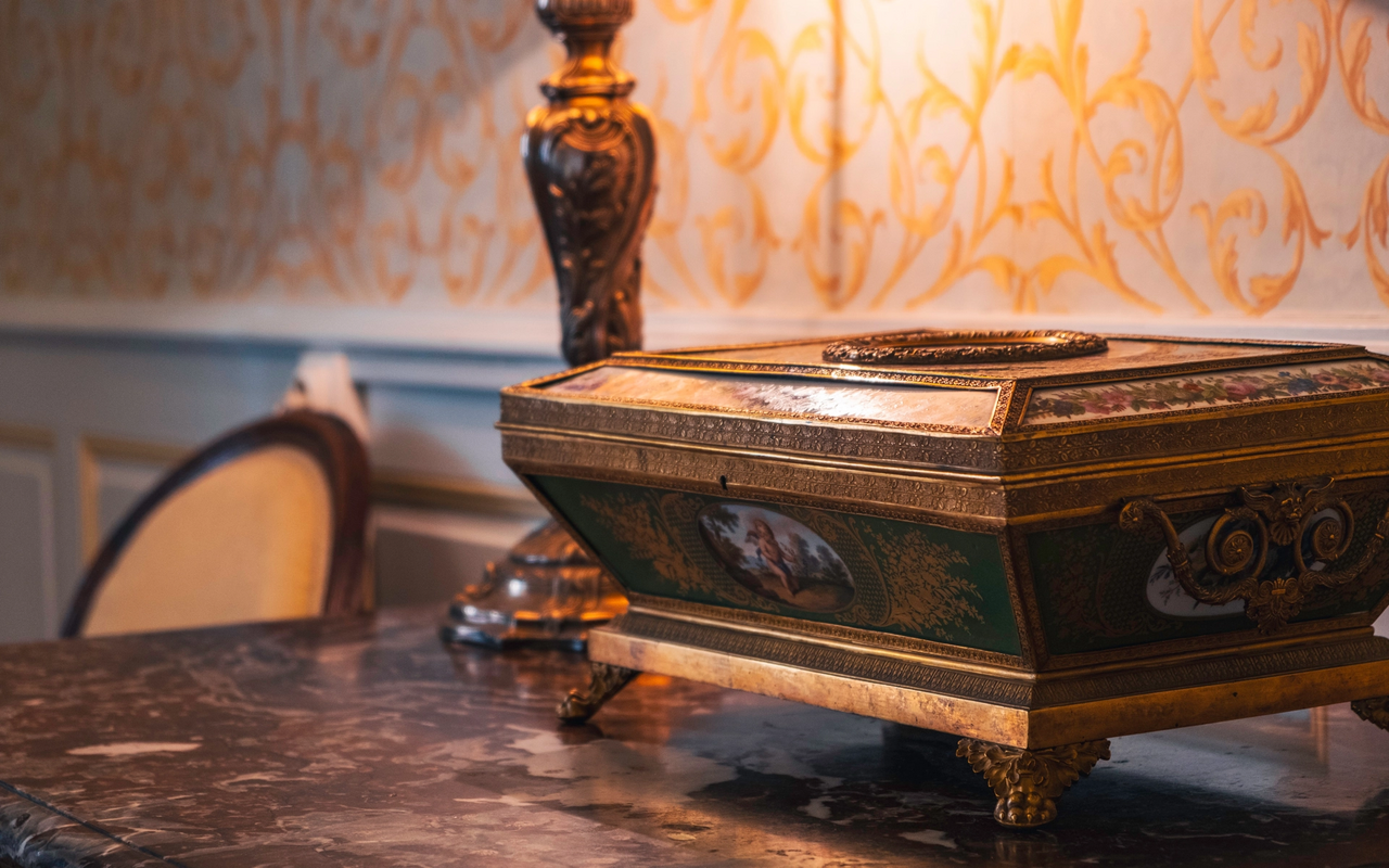 La Chambre Comte Eugène séduit par son mobilier d’époque soigneusement conservé, qui confère à la pièce un charme feutré et une ambiance authentique, digne d’une demeure aristocratique.