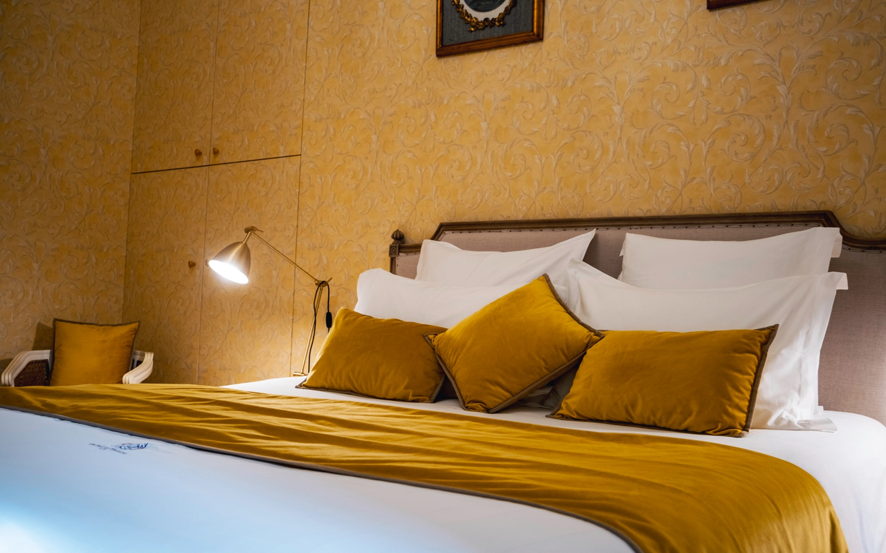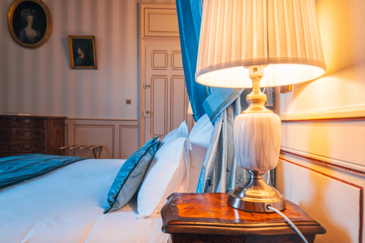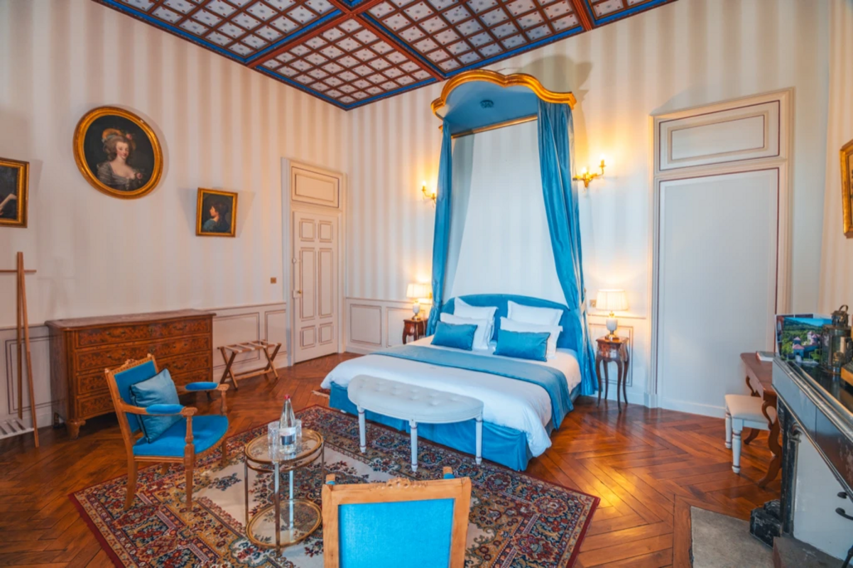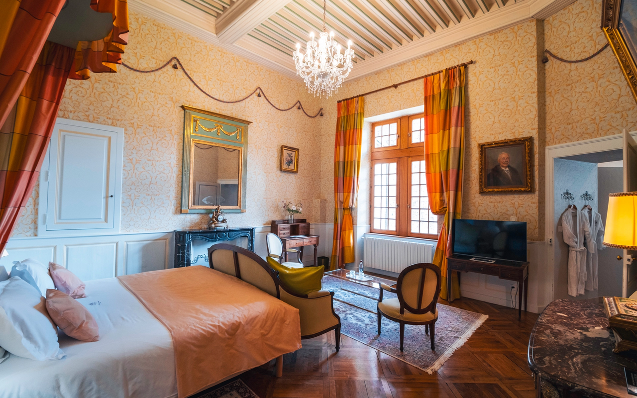 Spacieuse et chaleureuse, la Chambre Marquise de Sales a été conçue pour offrir un véritable sentiment de bien-être, au cœur du château. Chaque détail y cultive l’art du confort discret et de l’élégance intemporelle.