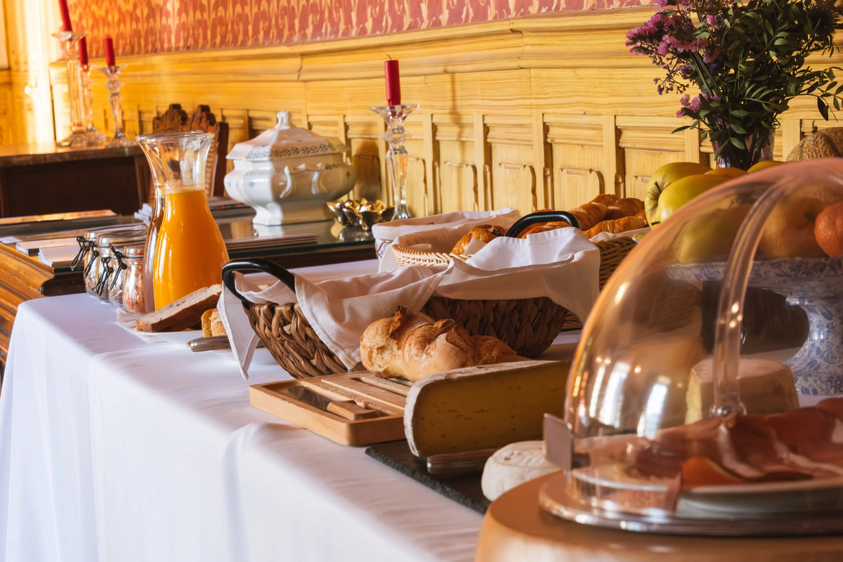 Le matin, un petit-déjeuner gourmand vous attend, composé de produits frais et locaux. Viennoiseries, pains, fruits de saison et jus fraîchement pressés viennent accompagner en douceur le début de votre journée, dans un décor empreint de charme et d’histoire.