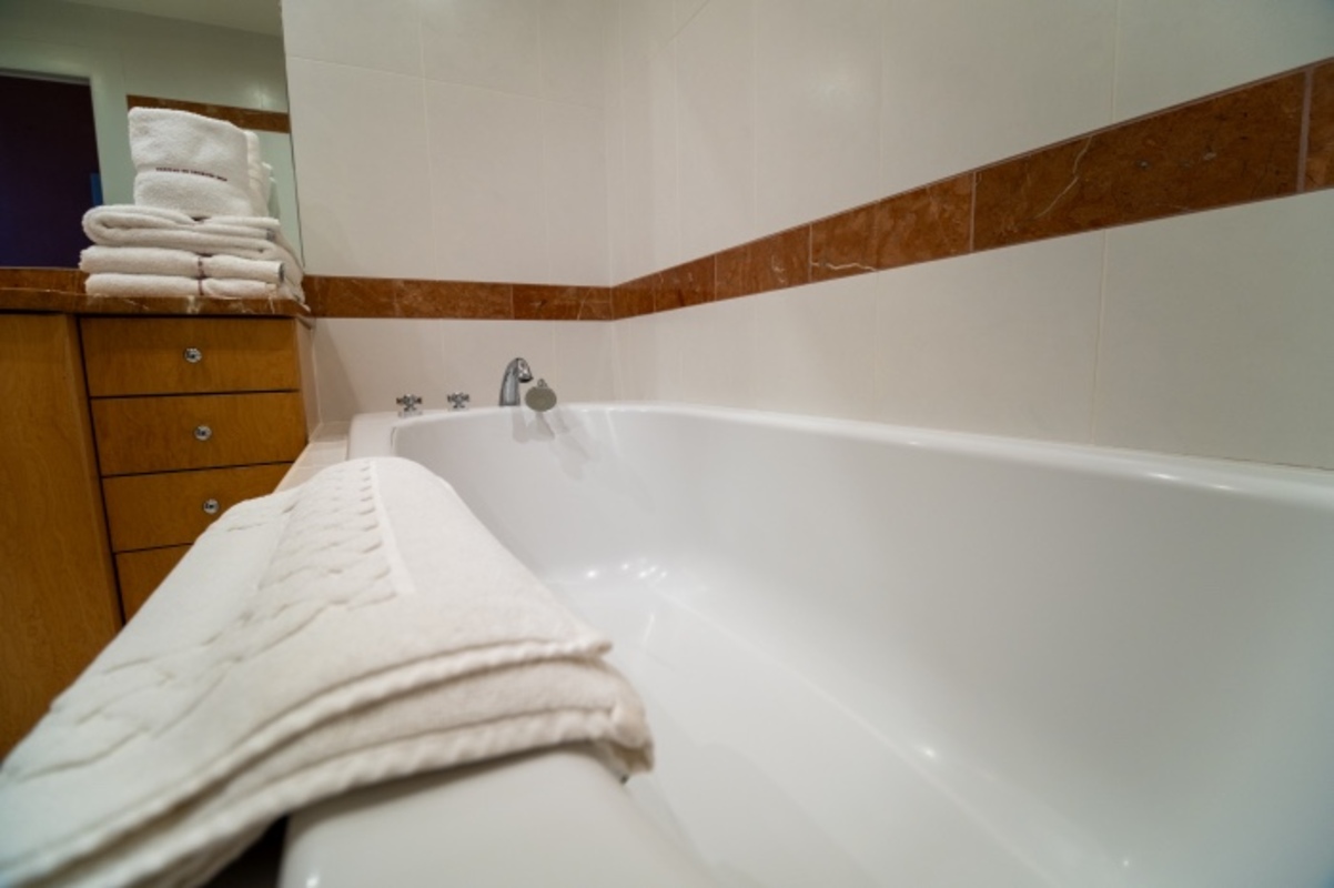 Vous y trouverez une salle de bains élégante, équipée d’un ensemble baignoire/douche, parfait pour alterner entre détente et fraîcheur selon vos envies.