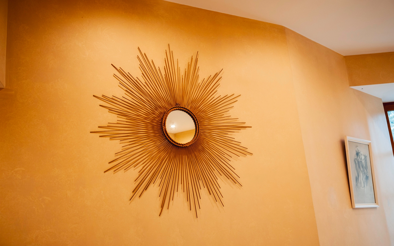Son atmosphère unique est sublimée par deux lustres anciens qui diffusent une lumière chaleureuse et généreuse, soulignant les volumes et la délicatesse des matériaux choisis. La salle de bains ouverte, pensée comme une extension naturelle de la chambre, offre une expérience fluide et originale, idéale pour les amateurs d’intérieurs singuliers.