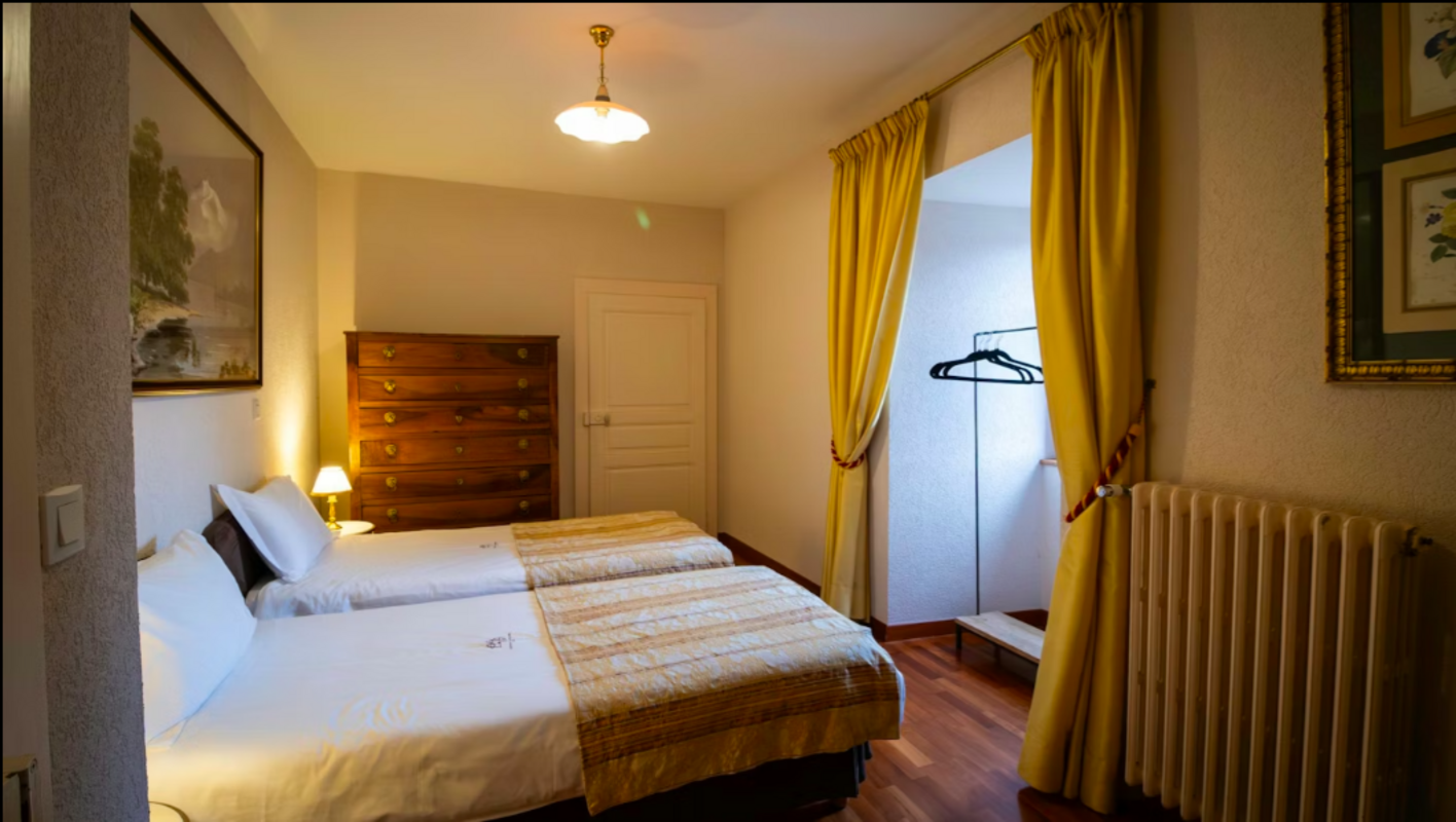 Située dans le château, la Chambre Comtesse Blanche vous plonge dans l’atmosphère élégante d’une demeure d’époque, avec son mobilier ancien chargé d’histoire, soigneusement préservé pour offrir charme et authenticité.
