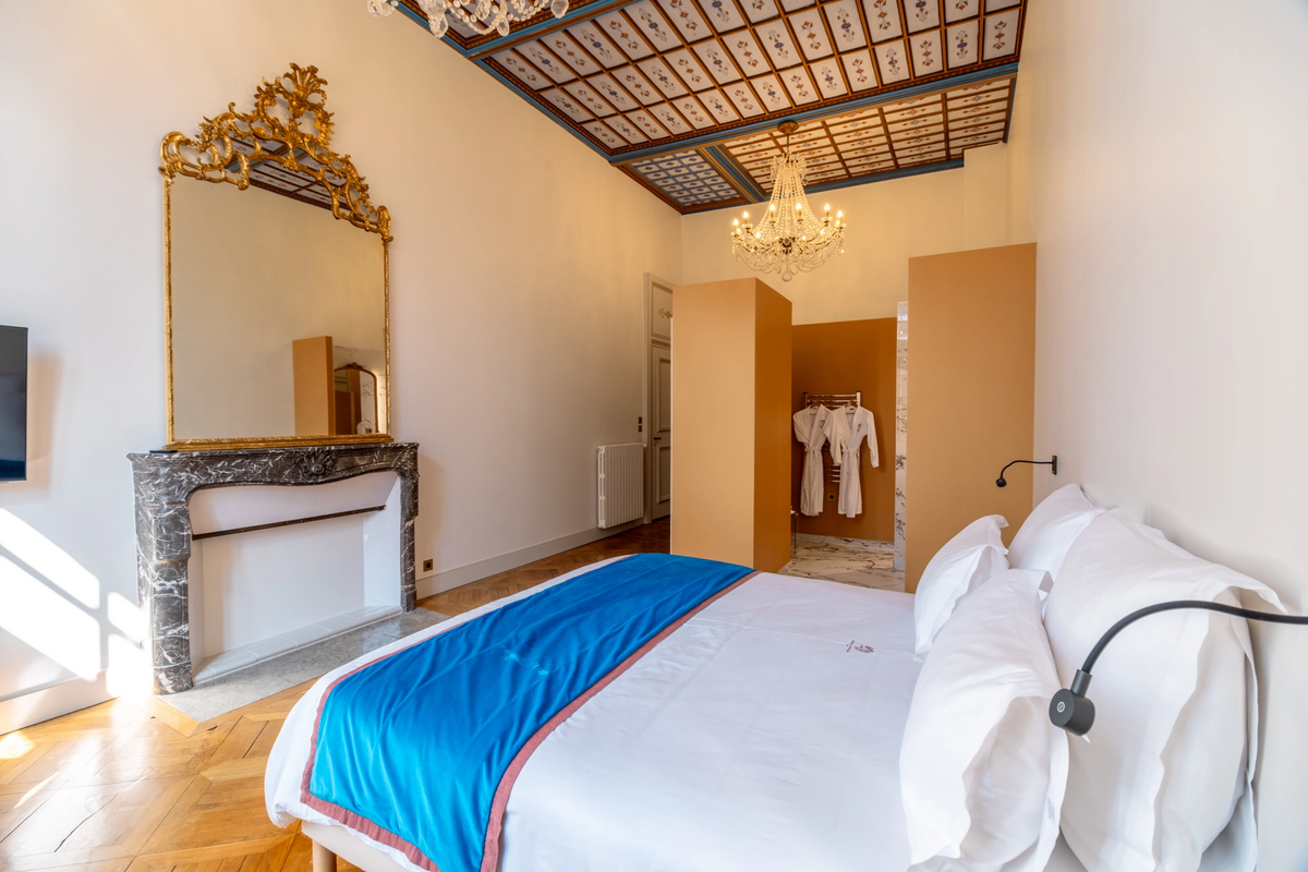 Nichée au calme, la Suite Marquise de Grollier incarne le raffinement à la française dans un cadre d’exception. Spacieuse et lumineuse, elle a été pensée pour offrir un séjour à la hauteur des plus hautes exigences.