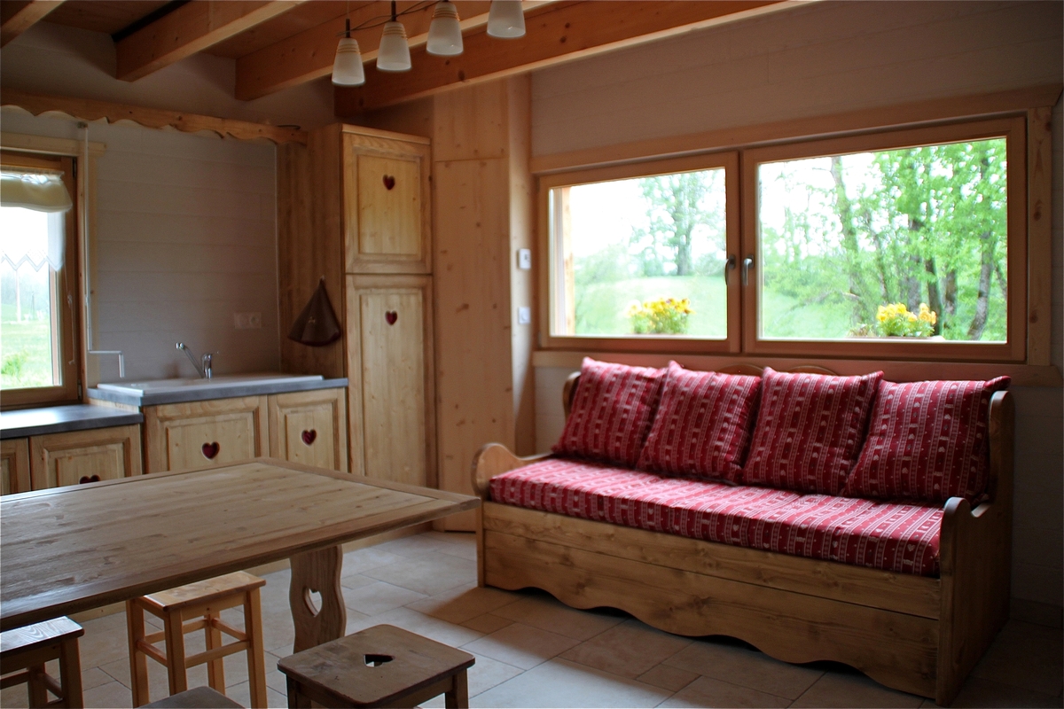 Nous sommes situés au hameau des Monnets , à l'écart du village, dans un environnement rural et authentique. Pour les amoureux de l'ambiance moyenne montagne et de la neige, le gîte est à proximité immédiate des pistes de ski de fond, de randonnées en raquettes, et des stations de ski alpin : les Rousses, Métabief, Mouthe, Lélex, ainsi que de la région des lacs et des cascades du Hérisson, offrant ainsi, en toutes saisons, une infinité d'activités et de découvertes, dans une nature très variée. Par ailleurs, depuis toujours, les travaux agricoles doivent laisser la place, l'hiver, aux activités traditionnelles telles que horlogerie, bijouterie, lunetterie, et aussi l'artisanat d'art, très présent sur ce plateau du Haut Jura. Nous sommes artisans potiers de grès, et exerçons notre activité sur place. Tarifs: Haute saison: du 20 déc 2014 au 21 mars 2015 : 540 € Moyenne saison: du 14 juin au 29 août 2015 : 480 € Basse saison (autres périodes): 420 € ces prix comprennent le chauffage, et le forfait ménage de fin de séjour. Ajouter taxe de séjour : 1 € par nuit et par personne de + 18 ans. Arrivée samedi à partir de 15 h, Départ le samedi avant 10h.
