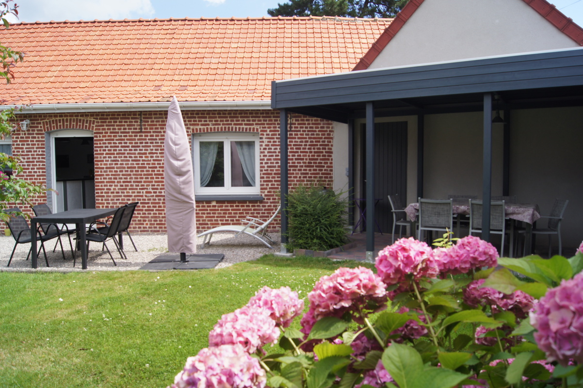 Gîte de 5 personnes avec jardin privé, 2 chambres, 2 salle de bains avec WC, un salon, une salle à manger et une cuisine.