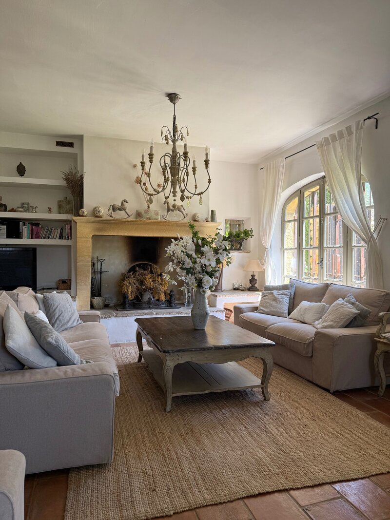 Chaque détail — lustres délicats, bois patiné, textiles naturels — crée une atmosphère douce et chaleureuse, propice aux moments de détente entre amis ou en famille.