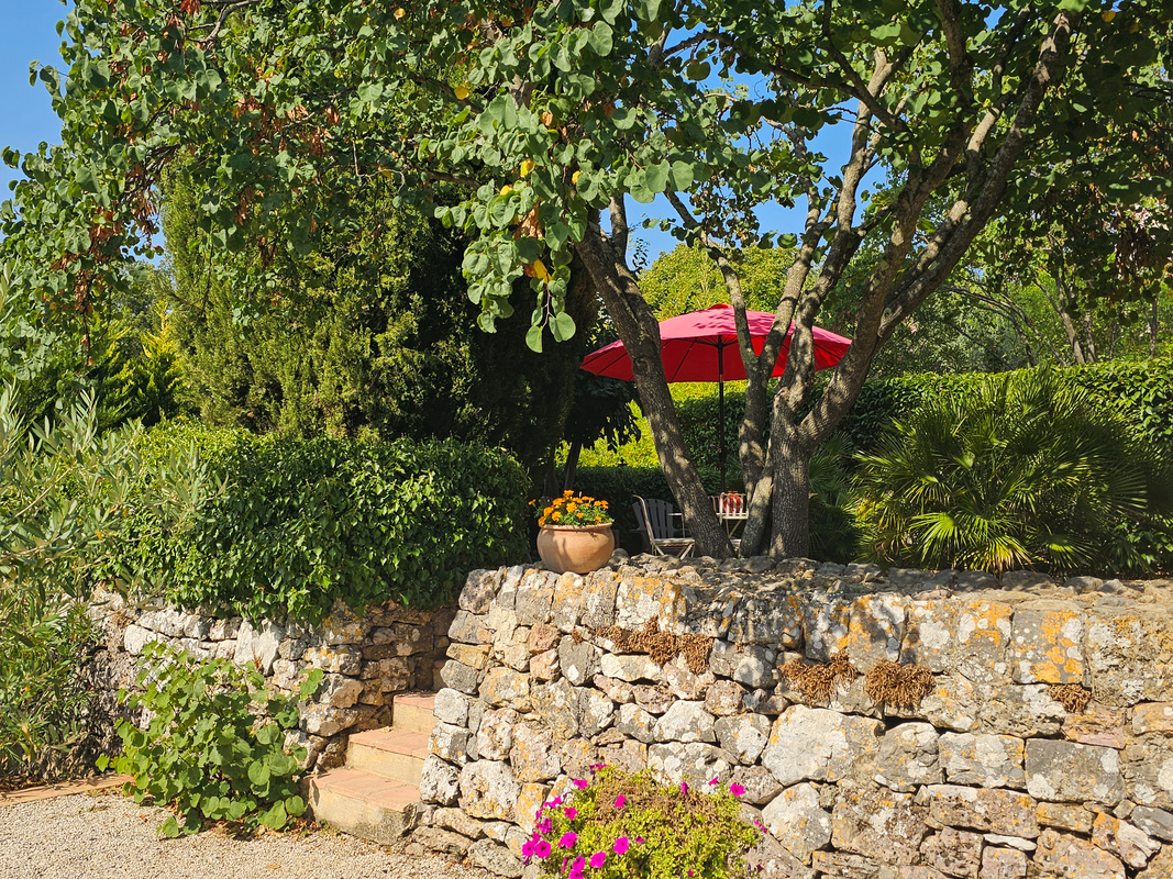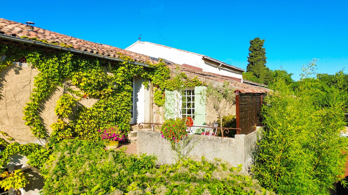 Depuis la terrasse orientée au levant, on domine les collines environnantes.