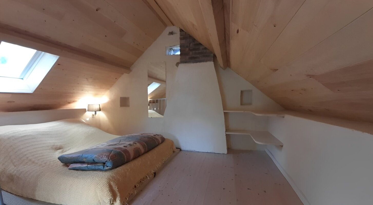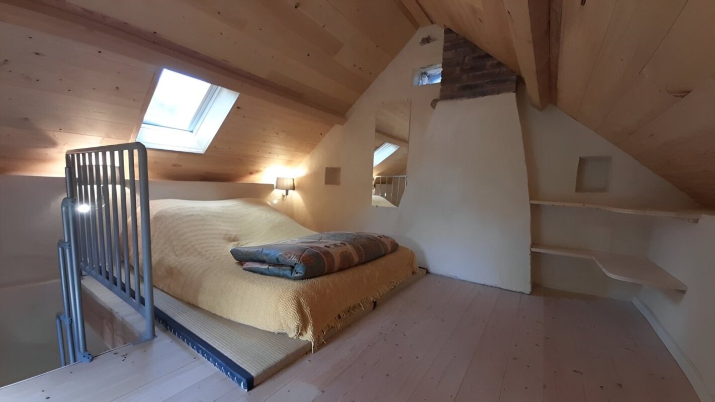 Chambre pour deux personnes équipée d'un lit double de 140x190, salle d'eau et WC.