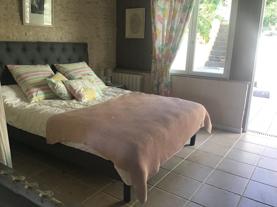 chambre : un lit 160, deux tables de nuit avec lampe de chevet, une armoire panderie