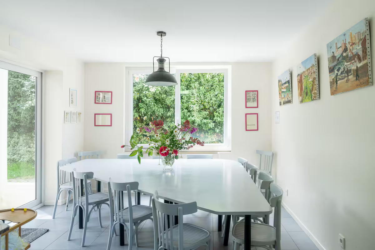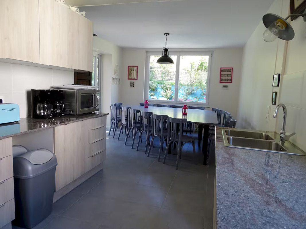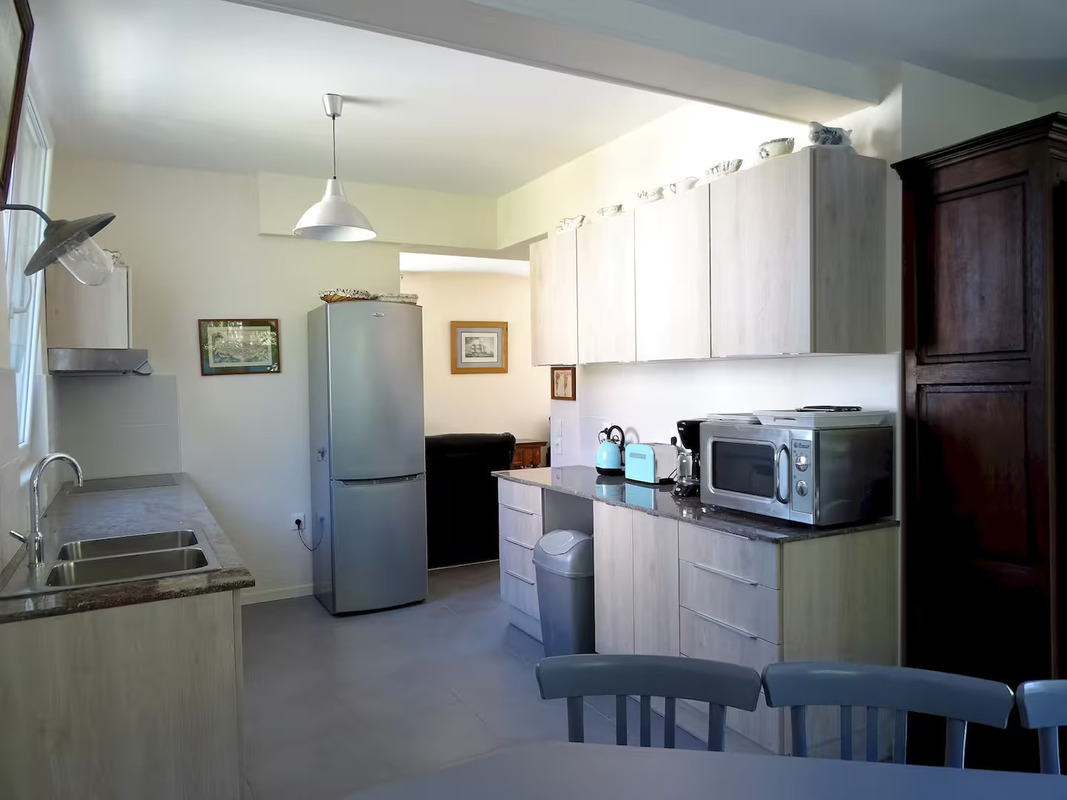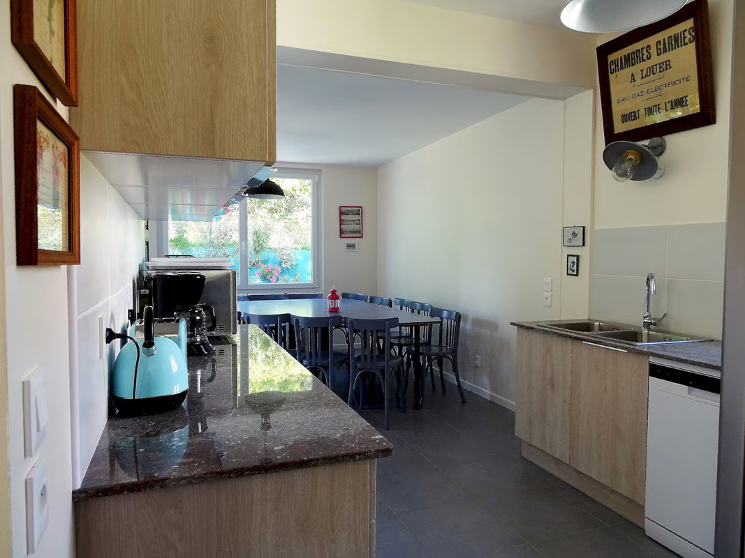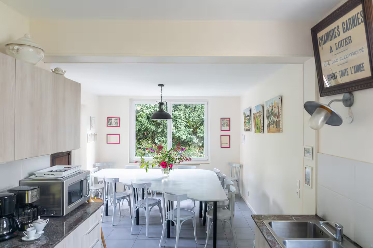 . VOUS RÉGALER : La cuisine entièrement équipée vous permettra de préparer de délicieux repas, à déguster dans la grande salle à manger avec sa table triangulaire réalisée sur mesure.