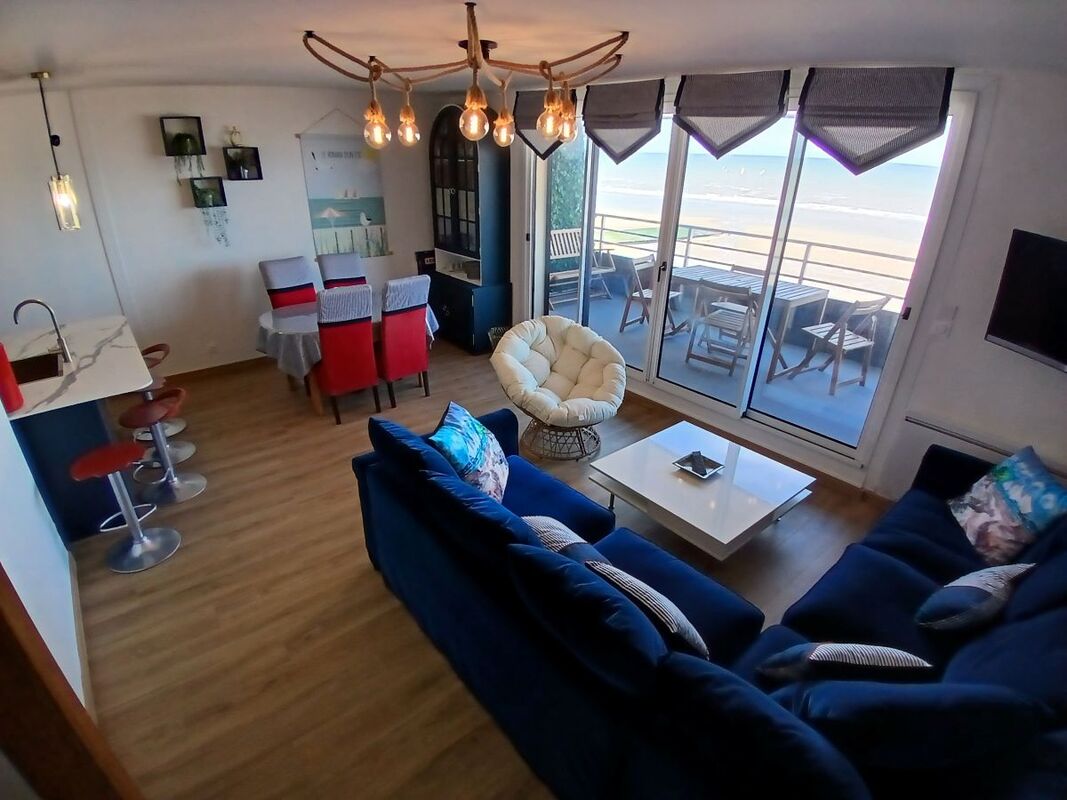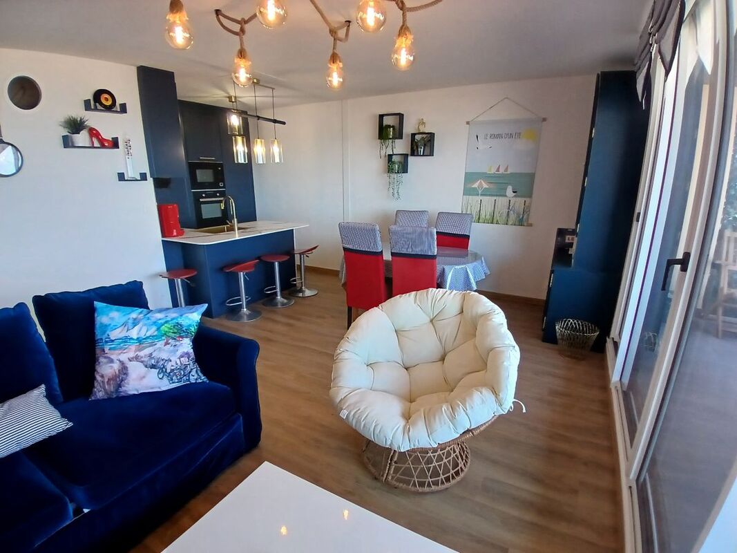 Aménagé avec goût et refait entièrement à neuf, du sol au plafond et des équipements et mobiliers, l’appartement donne plein vue mer avec sa terrasse de 12m², accessible depuis la grande baie vitrée du séjour, abritée du vent et sans vis-à-vis.