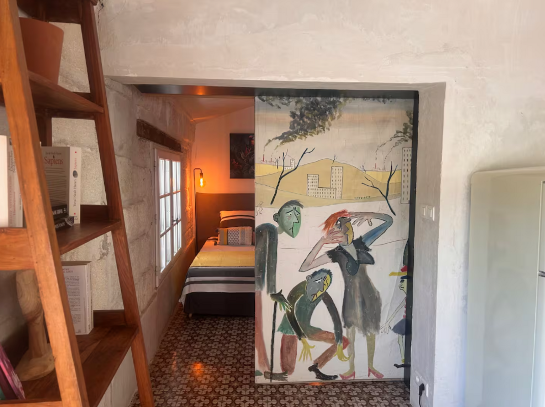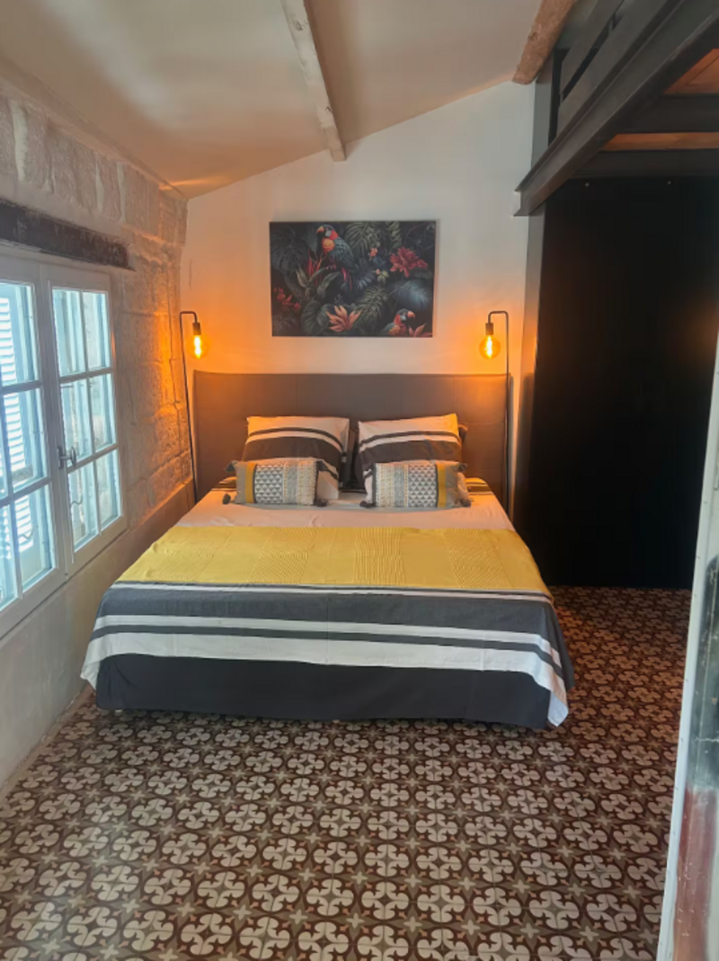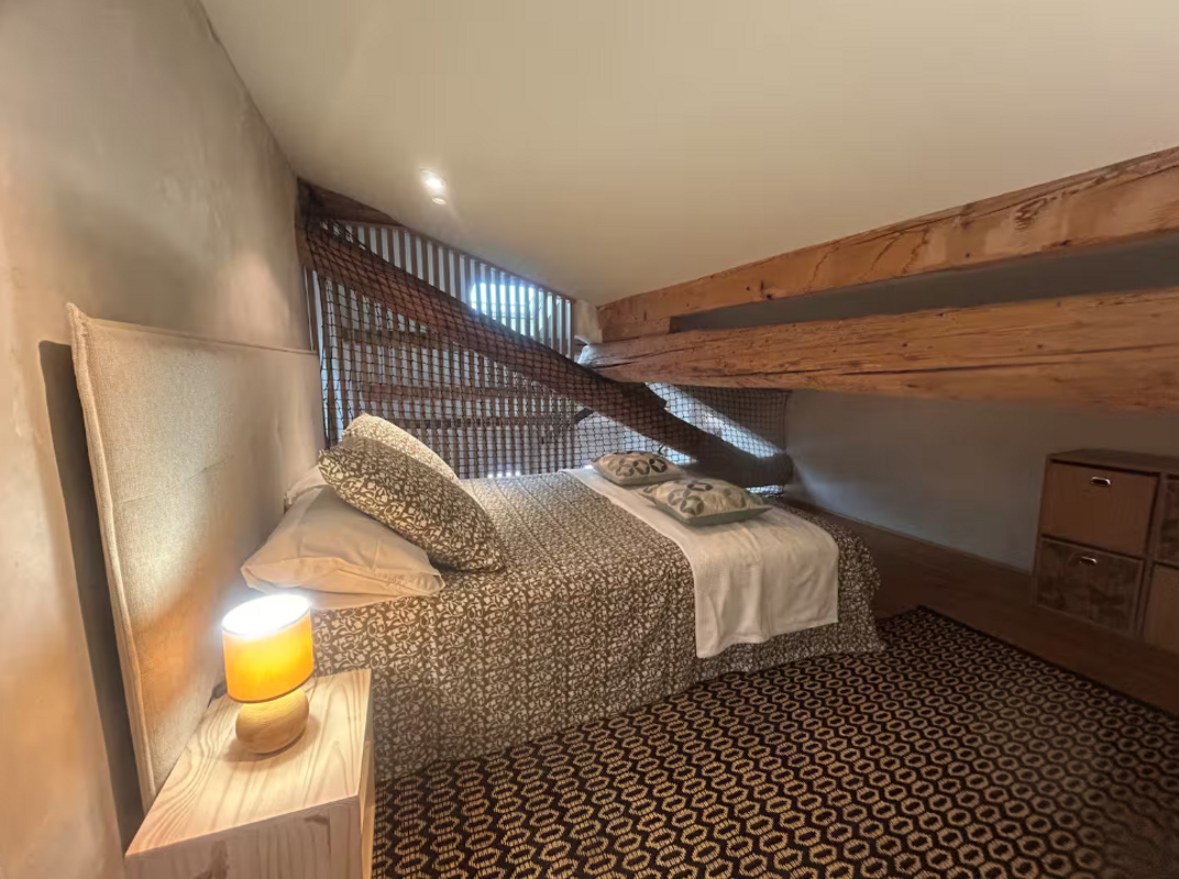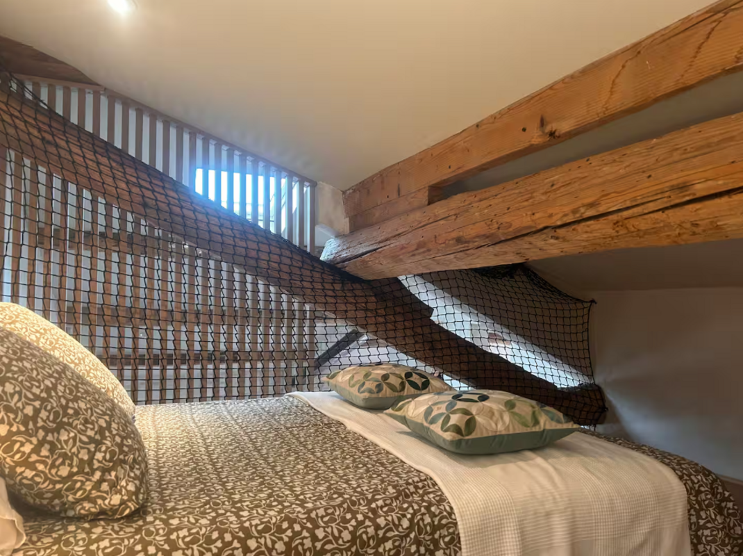 Au rez-de-chaussée, vous trouverez une pièce de vie chaleureuse avec salon et un coin cuisine équipée d’un four micro-ondes et d’un lave-vaisselleal pour vos repas à la maison. Derrière une cloison coulissante en toile peinte, se cache une belle chambre principale avec lit double 160. Accessible par un escalier en colimaçon, une deuxième chambre parfaite pour 2 personnes supplémentaires, se trouve en mezzanine cosy nichée sous les toits avec un lit de 140.
