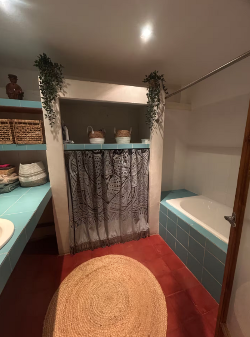 Une salle de bain avec baignoire/douche ainsi qu’un lave-linge viennent compléter l’ensemble de l’aménagement.