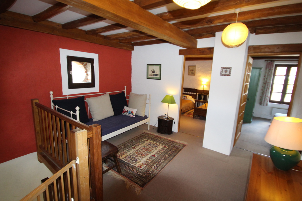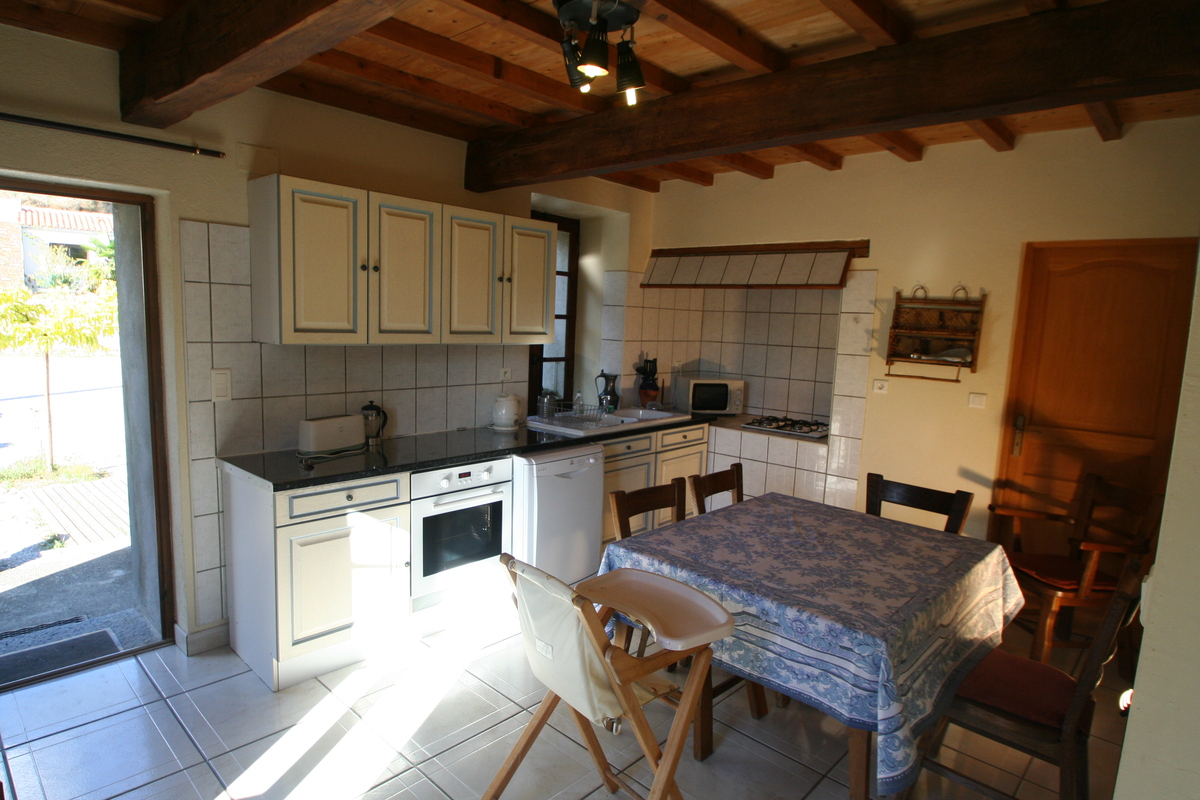 Joli gîte pour 5 personnes avec poutres apparentes, sur deux niveaux, une terrasse privative avec barbecue. Deux chambres doubles dont une avec lit de 1m60 et l'autre avec deux lits, un lit supplémentaire sur le pallier. Salle de bains avec baignoire, WC séparé. surface 75m²