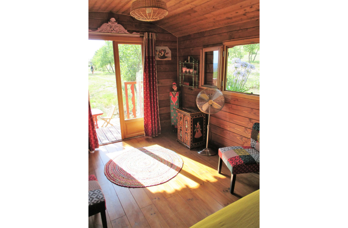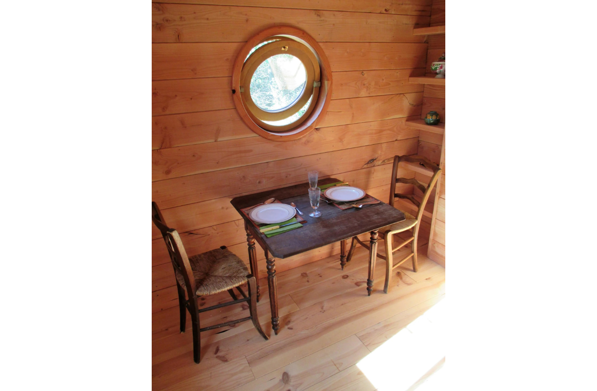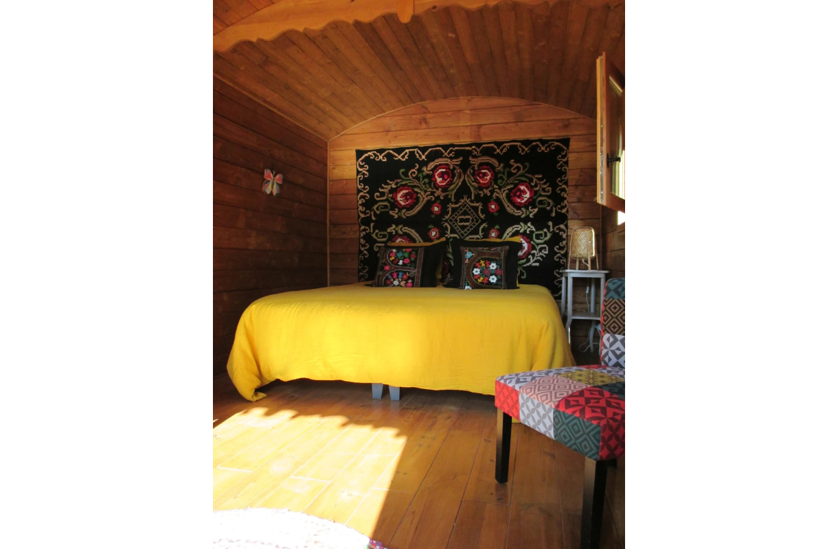 À l’ombre des chênes centenaires, cette roulotte mêle charme bohème et confort moderne. Parfaitement intégrée dans le paysage, elle permet de vivre une expérience insolite sans renoncer au bien-être.