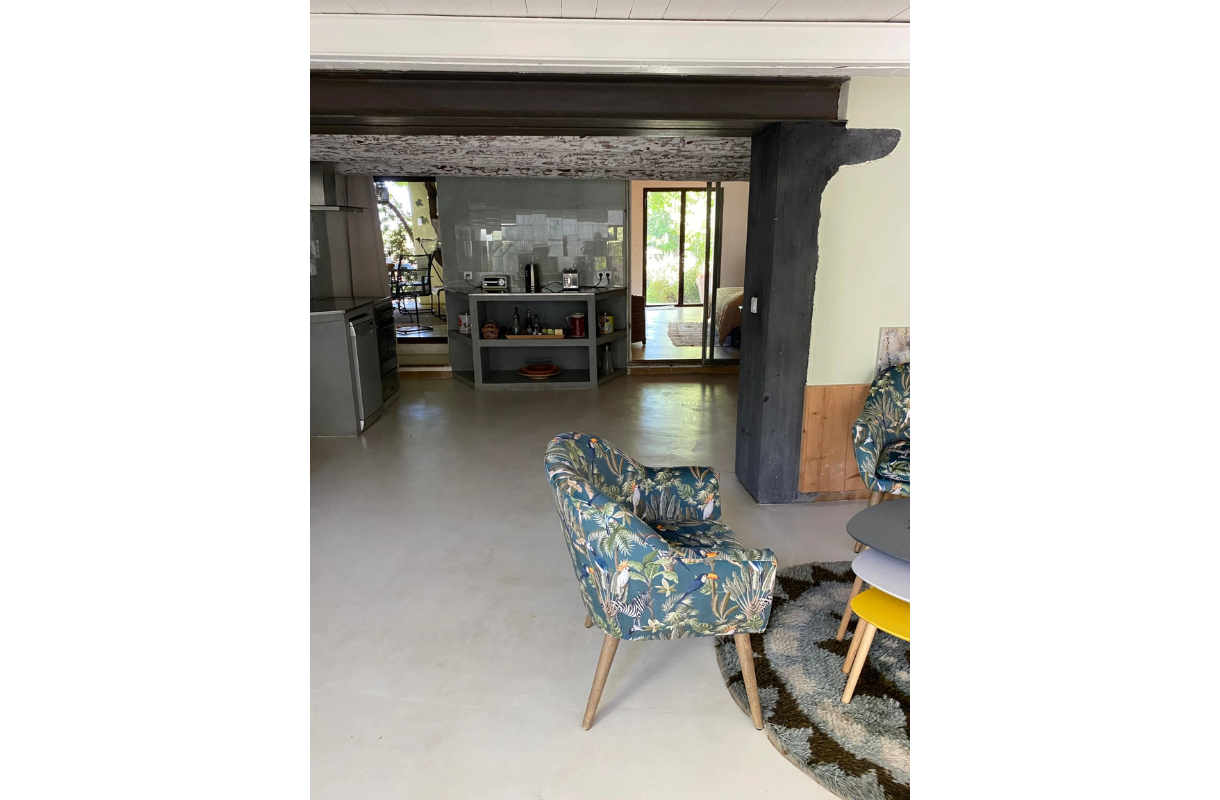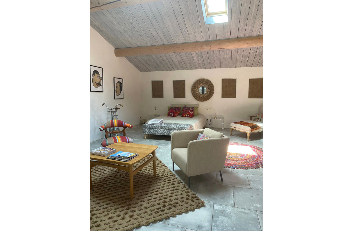 Ce logement offre un voyage visuel à travers les cultures grâce à une décoration chinée avec soin. Sa vaste pièce de vie s’ouvre sur la nature environnante du parc de 4 hectares, véritable écrin de verdure.