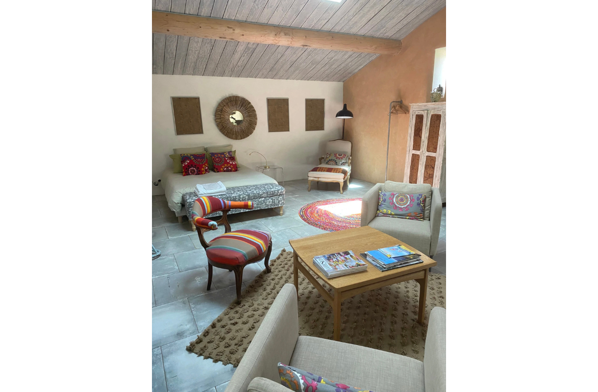 Niché au cœur d’un domaine de 4 hectares, l’appartement aux éléphants vous séduira par sa grande superficie (75 m²) et son atmosphère unique, façonnée par une décoration inspirée de voyages lointains et de trouvailles authentiques. Depuis le Mas du Fort, le regard se perd vers le Grand Luberon qui domine fièrement les environs. Parfaitement situé pour explorer les incontournables de la Provence, ce lieu invite à vivre une escapade ensoleillée, bercée par le chant des cigales et les effluves de lavande, dans un cadre naturel d’exception.