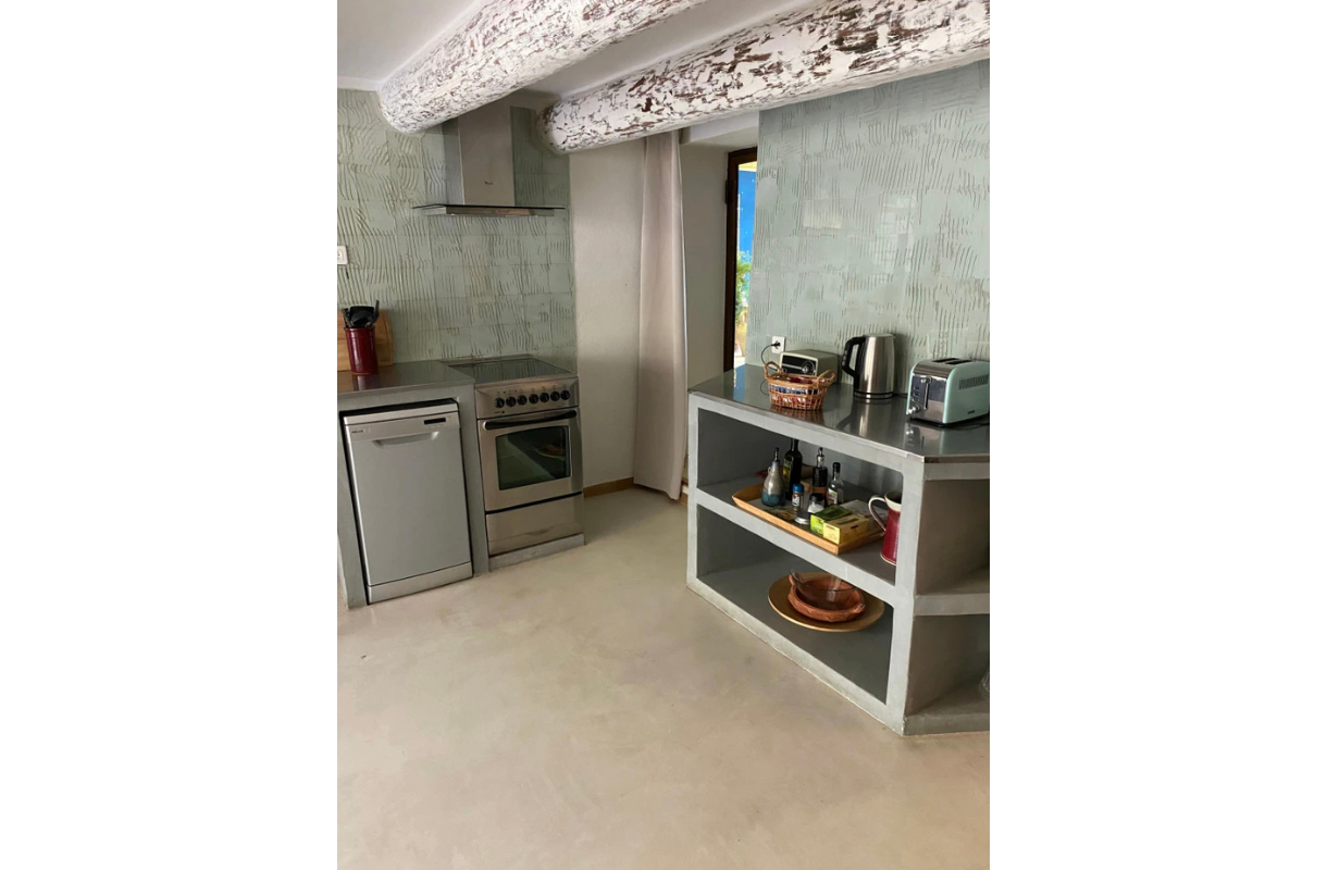 Lave vaisselle, congélateur, micro-onde, four, réfrigérateur, cafetière, bouilloire, vaisselle et couverts, grille-pain, plaque de cuisson