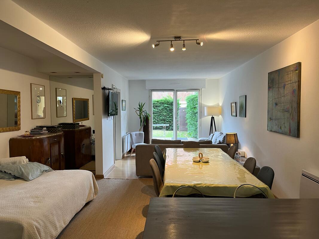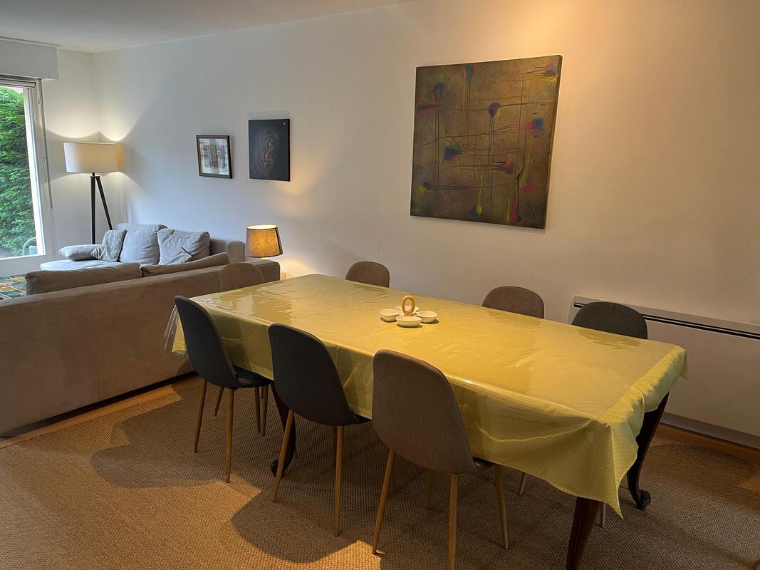 Jardin privé, permettant l'accès à des personnes à mobilité réduite, salle de bain et toilettes au rez de chaussé et au 1er étage, 2 chambres au rez de chaussé et 2 chambres au 1er avec un lit une personne dans une des chambres, un lit appoint 2 personnes est utilisable dans la partie salon , salle à manger.