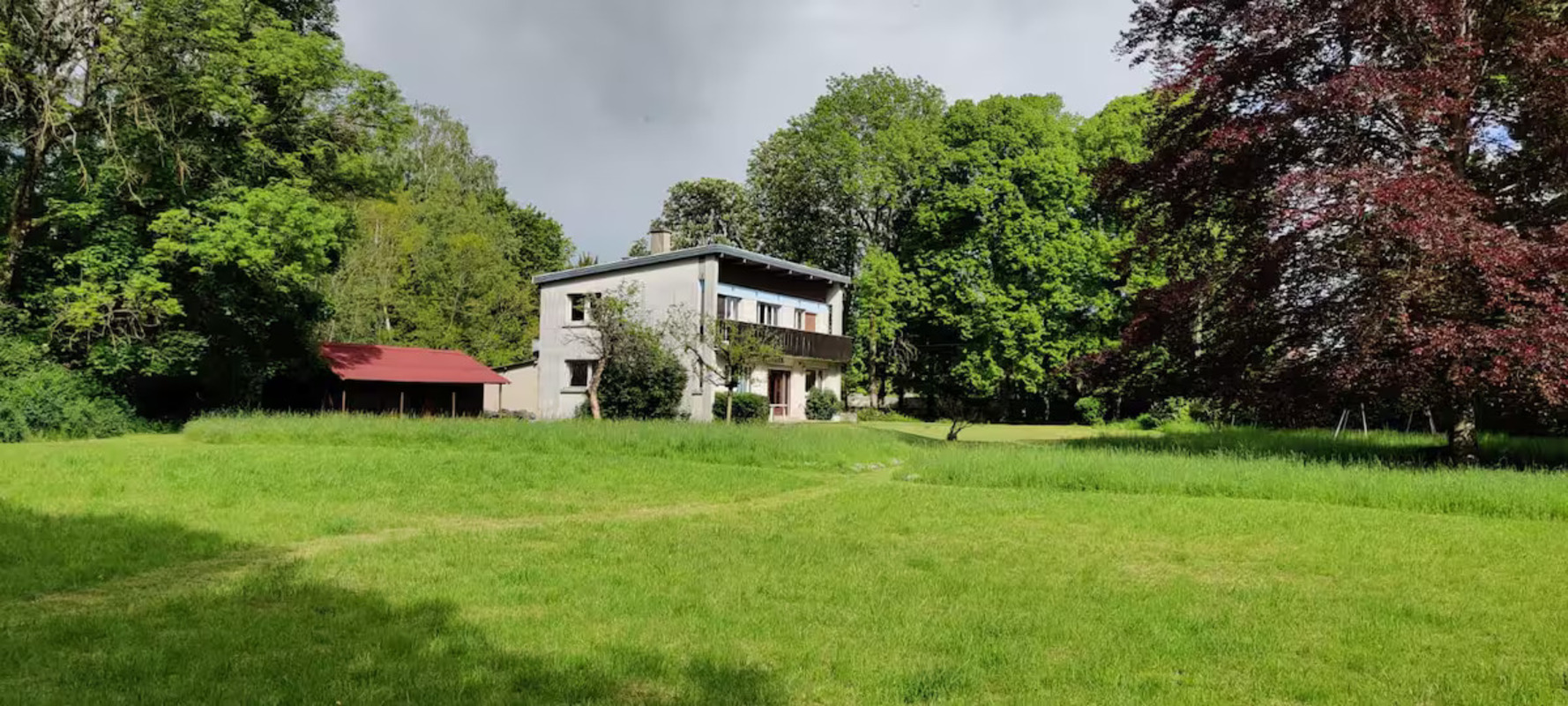 Grand parc paysager de verdure abritant oiseaux, chevreuils qui viennent boire le soir.