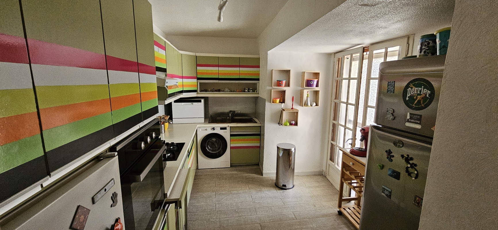 Lave linge, lave vaisselle, congélateur, micro-onde, four, réfrigérateur, cafetière, bouilloire, cafetière Nespresso, vaisselle et couverts, grille-pain, plaque de cuisson, cuisinière, ustensiles de cuisine, tables à repasser, fer à repasser, robot patissier